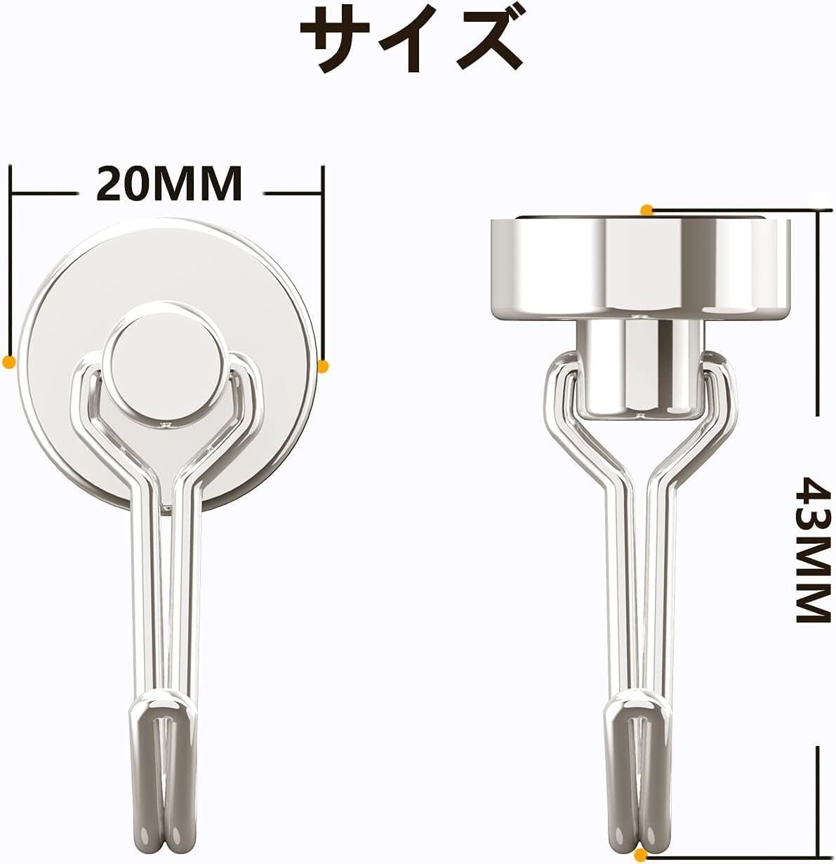 Homion【4個セット】マグネット フック 磁石付き 小型 錆びない ステンレス製 垂直耐荷重10kg 直径20MM 防腐食 冷蔵庫 玄関 鍵置き キーホルダー キッチン オフィス 浴室 お風呂 収納 屋外 吊り下げ 壁掛け用 磁石フック 小さい