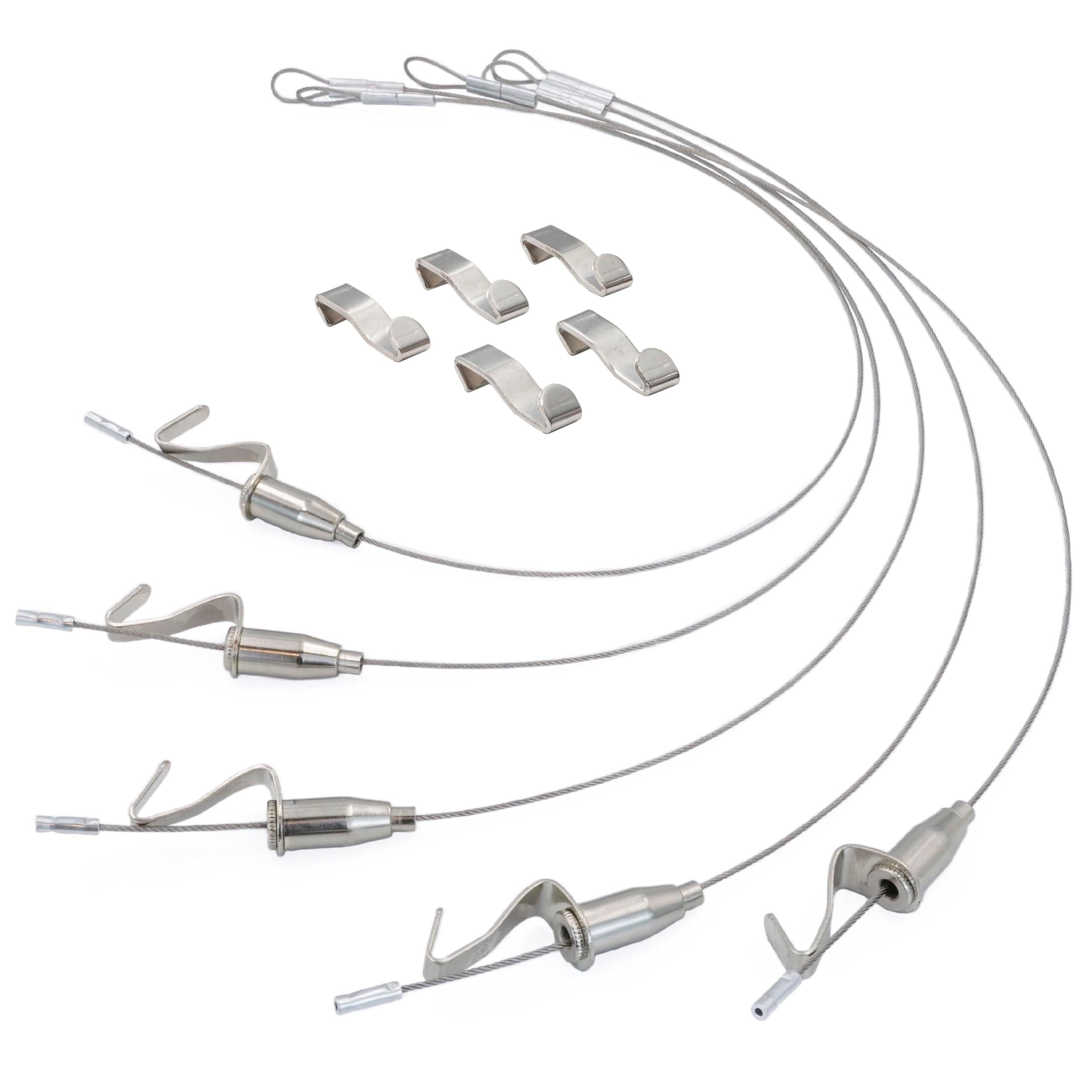 【大切な絵画をしっかり固定】丈夫なステンレスワイヤーで安心・安全に額やポスターなどを固定することができます。シンプル・スタイリッシュなデザインで使用場所を選びません。※当商品にピクチャーレール&ピクチャーレールに装着する専用フックは付属しておりません。別途市販品をお買い求めください。