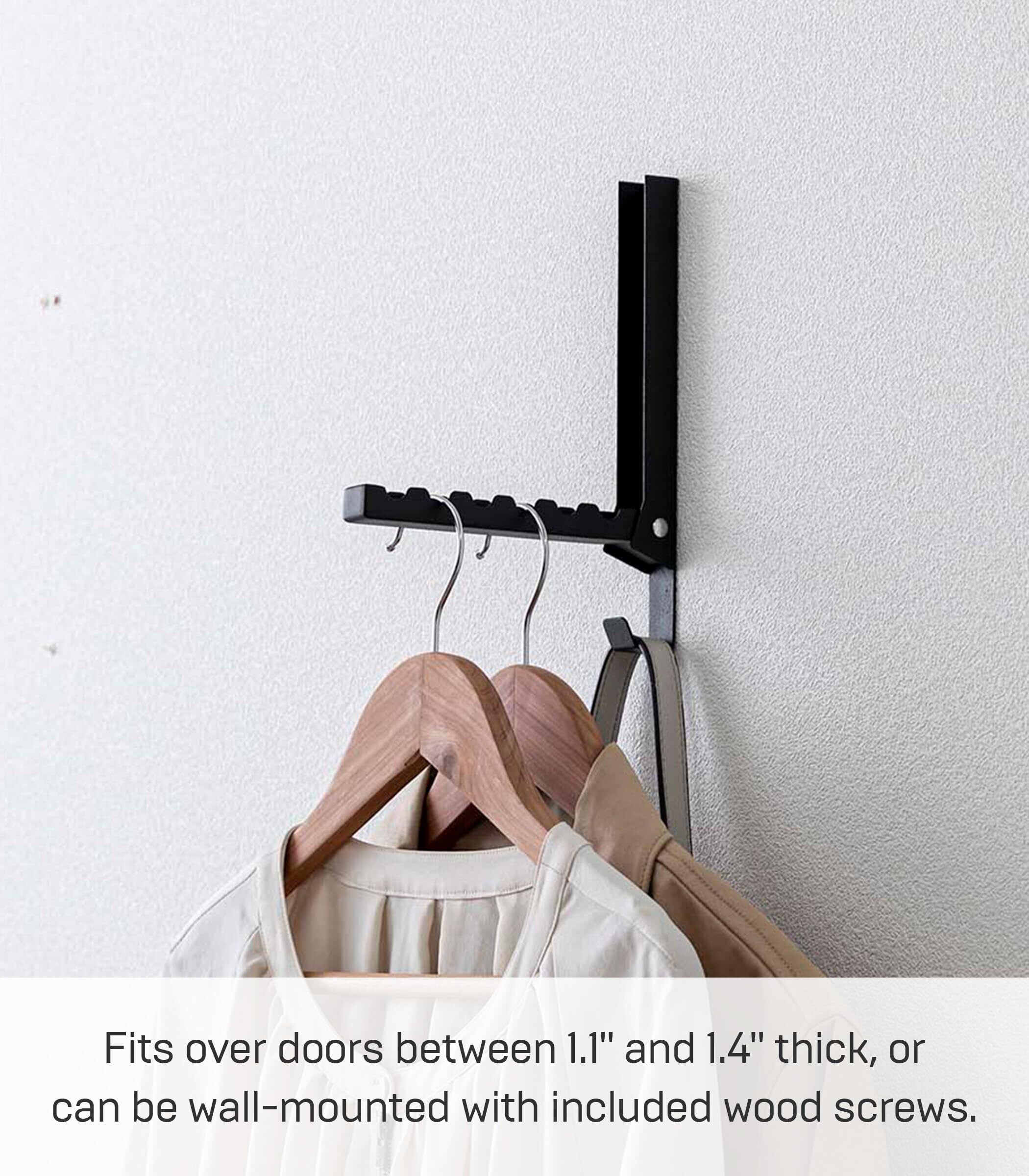 山崎実業(Yamazaki) 使わない時は収納できる ドアハンガー ブラック 約W2XD20.5XH23.5cm(使用時) タワー 折り畳み スッキリ収納 簡単設置 5515