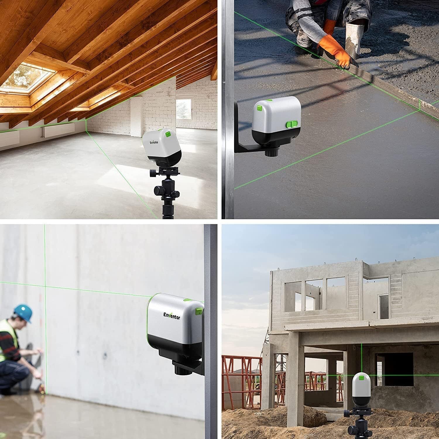 ENVENTOR レーザー墨出し器 レーザークラスII 360°回転可能な水平および垂直ポイント 2つのレーザー出射口 磁気サポート パルス機能 USB充電 充電式電池 IP54 プレゼント(グリーン)