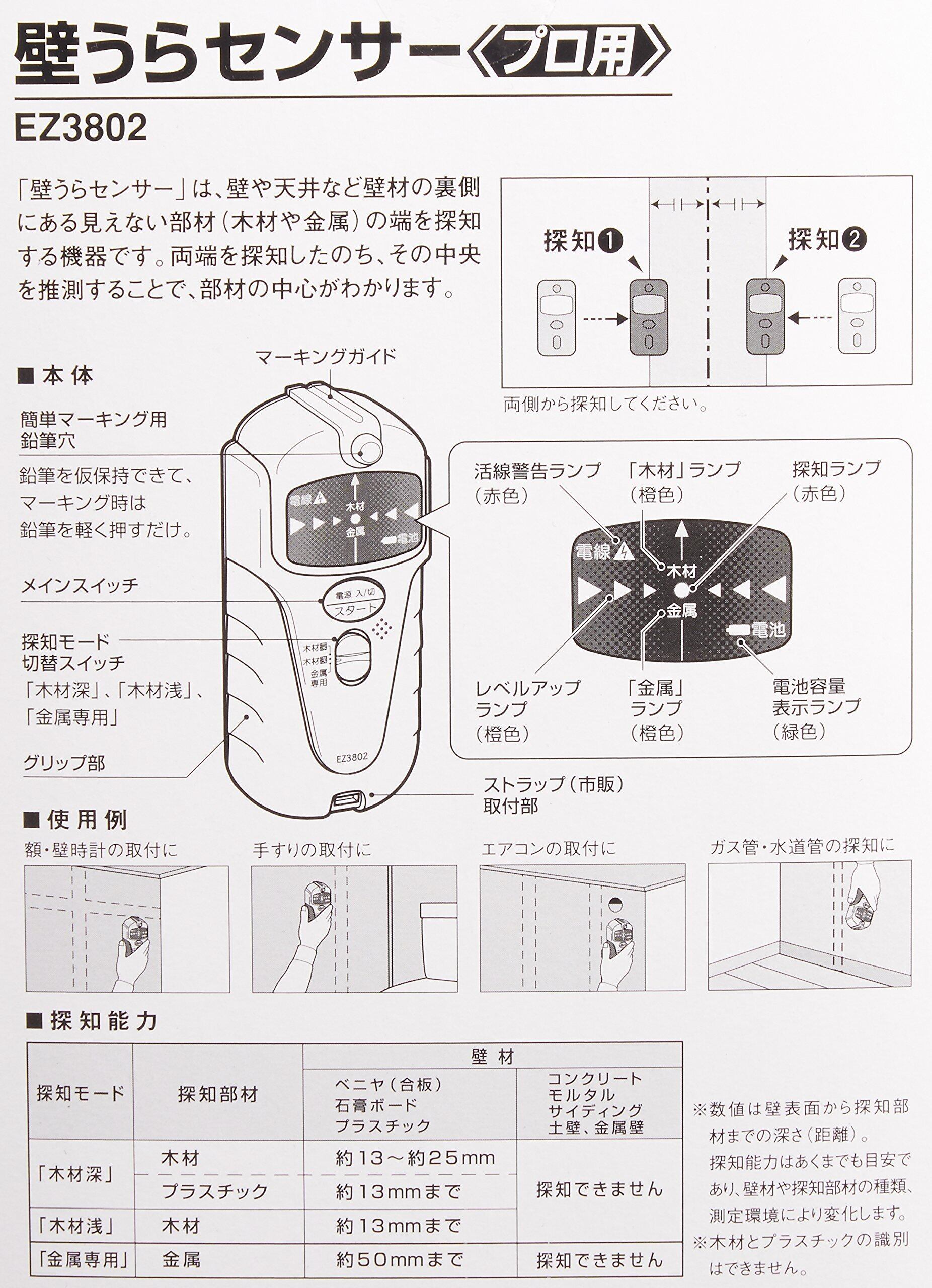 パナソニック(Panasonic) 壁うらセンサー 乾電池式 (単3乾電池2本) 内装材専用 木材・プラスチック・金属探知 下地センサー EZ3802