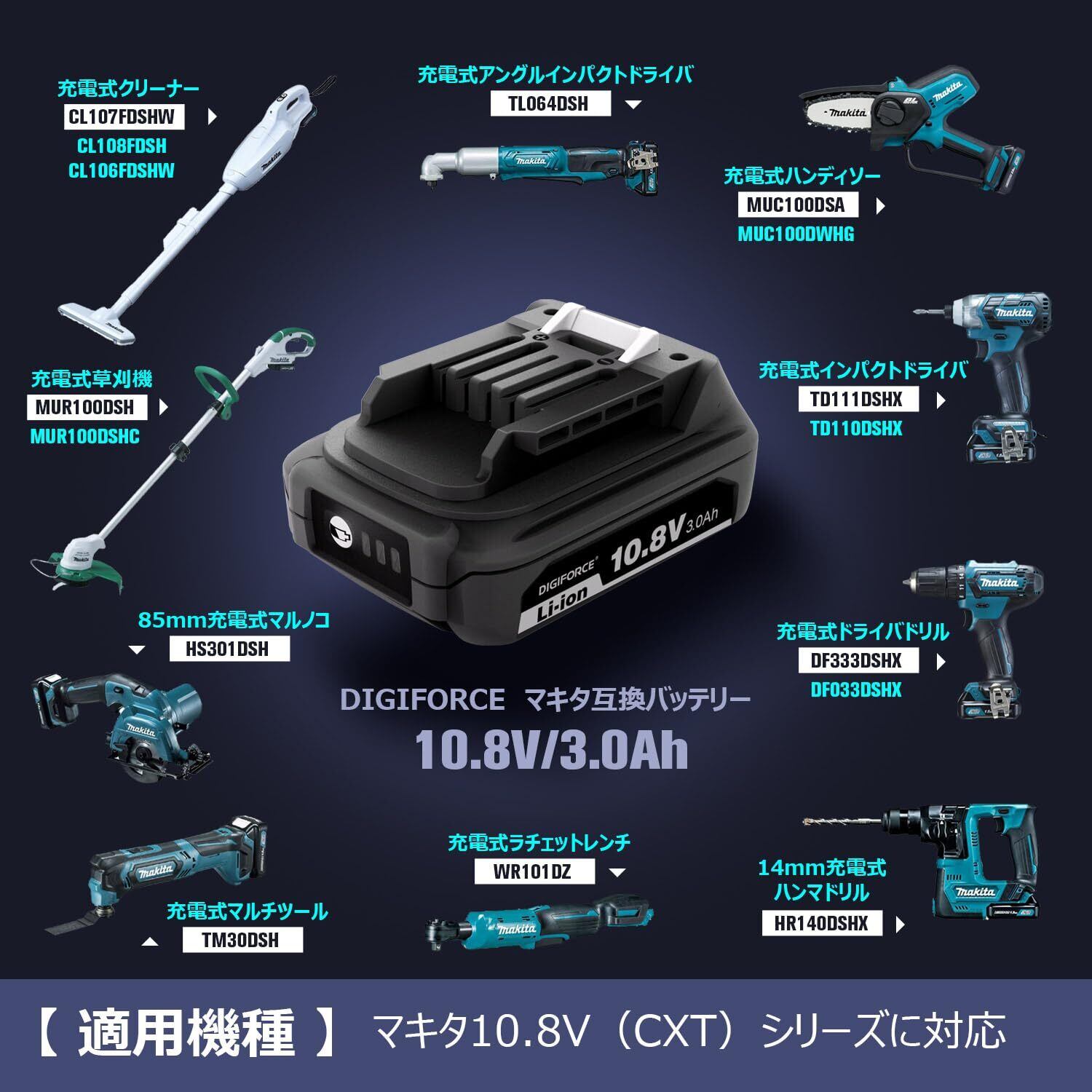 DIGIFORCE マキタ バッテリー 10.8V BL1030B 互換 大容量 3.0Ah (BL1015 対応) 日本メーカー 【単品】