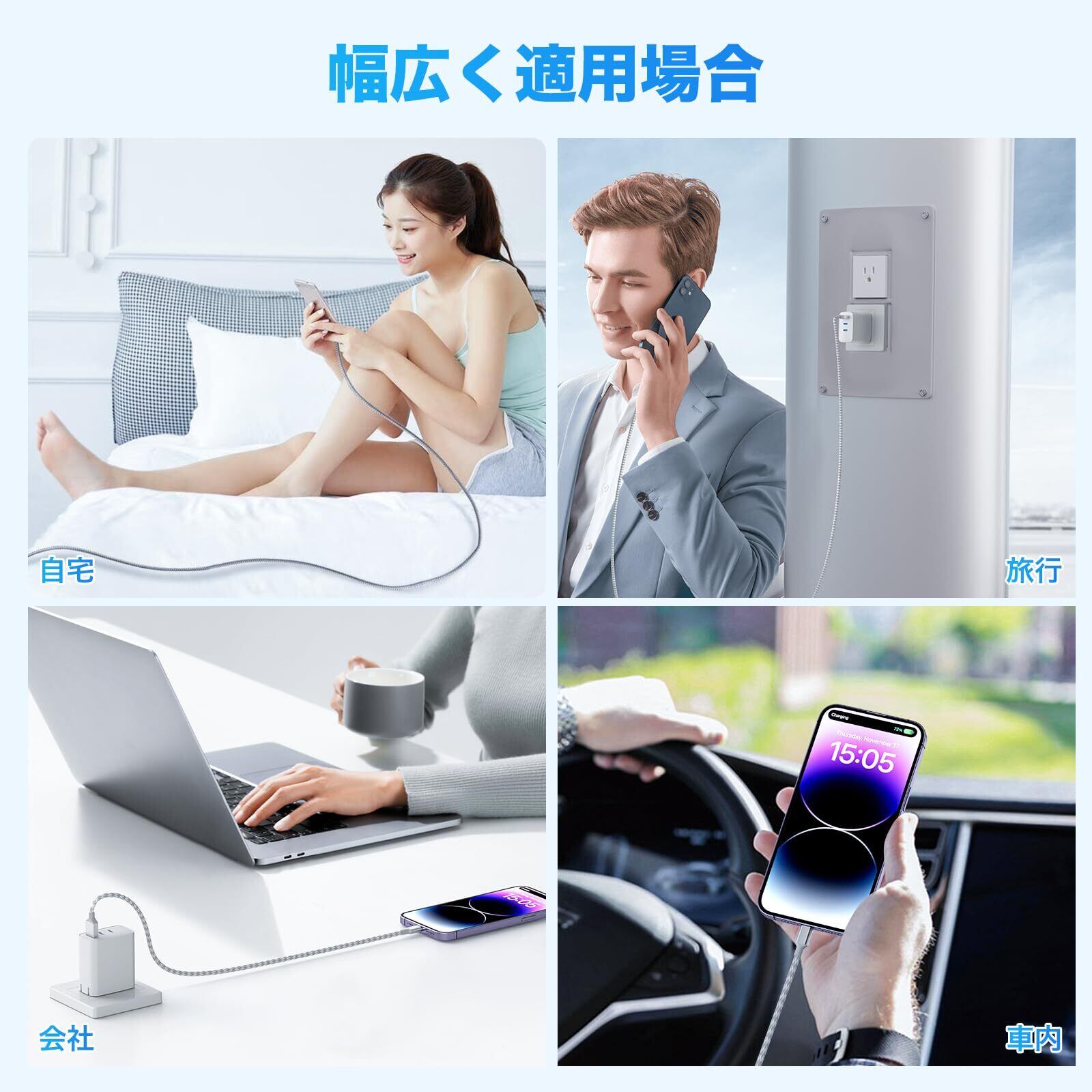 【便利で使いやすい】iPhone 充電ケーブルは長さ1m-2mあり、リビング、寝室、車内、オフィス、自習室、喫茶店など多くの場所での使用に最適です。パッケージにiPhoneケーブルが4本セットで、会社用、家用、持ち歩き用などに限らず、旅行や出張の時も必要なもので4本の用意がぴったりです。