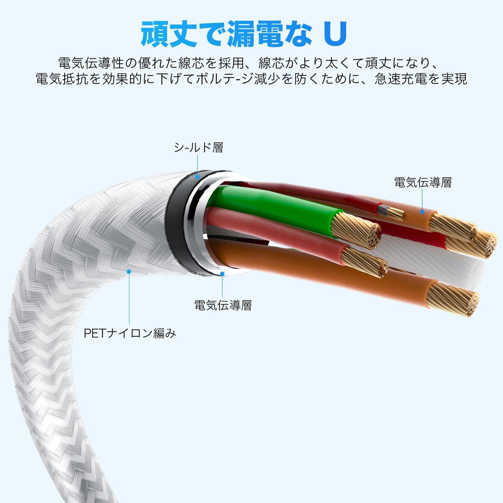 特徴 データ転送, 短絡保護, 編組, 軽量, 高速充電