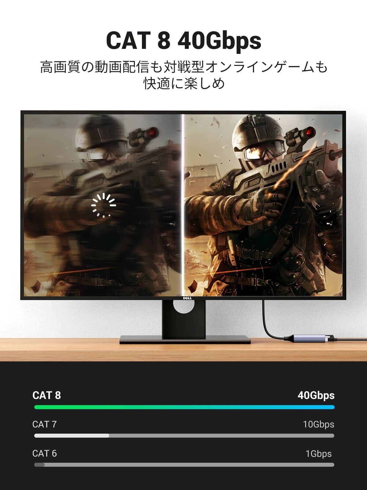 4倍速いネットワーク速度:UGREEN CAT8イーサネットケーブルは40GbpsBASE-T標準をサポートし、10Gbpsをサポートする標準のCAT7ケーブルよりもネットワーク速度で4倍高速です。※本製品のネットワーク速度は設備のポート及びルーター接続ポート規格にも関係します。設備のネットワークポートの規格及びルーター側に接続したネットワークポートの規格をご確認ください。