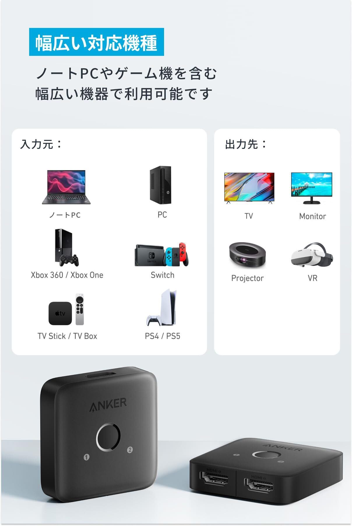 Anker Switch (2-in-1 Out, 4K) 双方向 セレクター 4K HDR 3Dコンテンツ対応 分配器 切替器 MacBook Pro/Air Switch Xbox 360 他