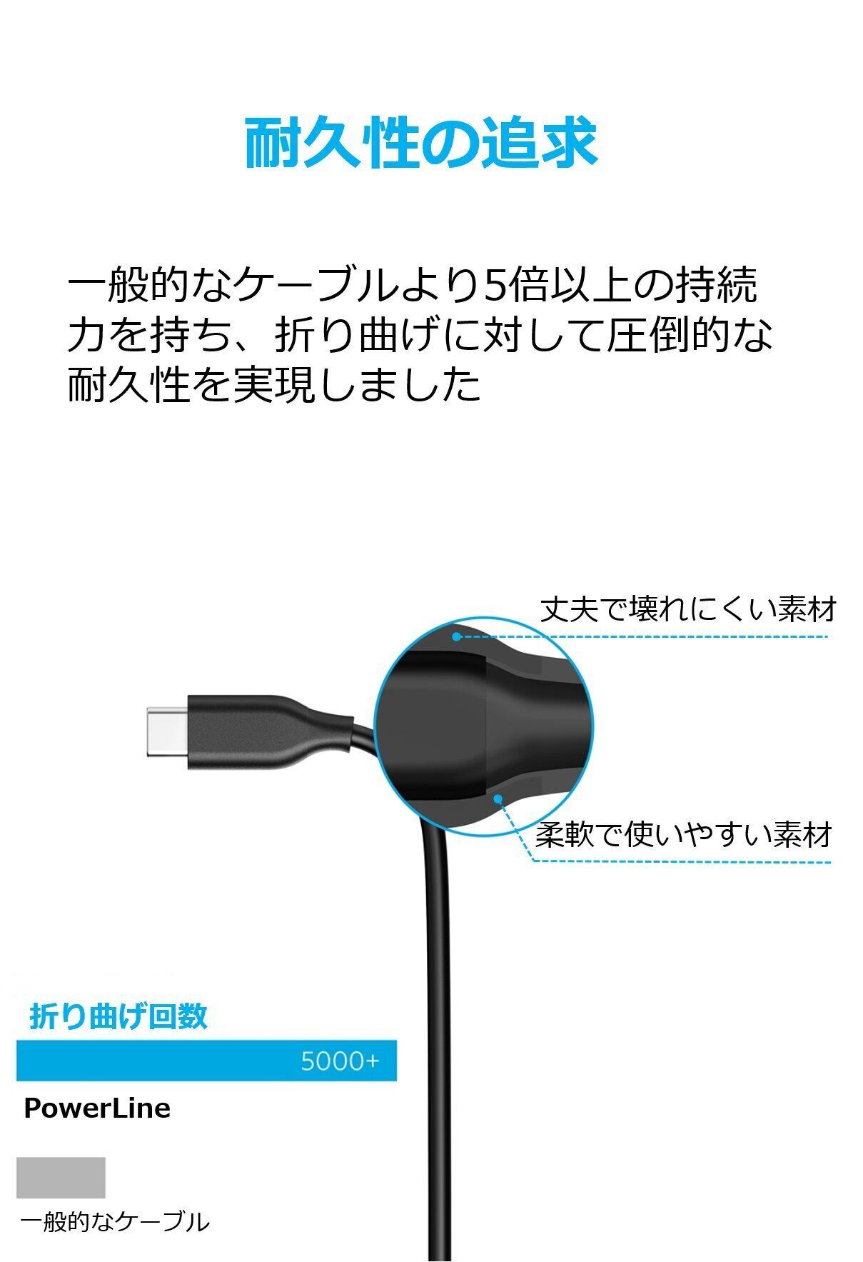 高い耐久性:高耐久素材を採用し、一般的なケーブルより5倍以上長持ちします。また安全性と信頼性の向上のため、56Kオームのプルアップレジスターを採用しました。