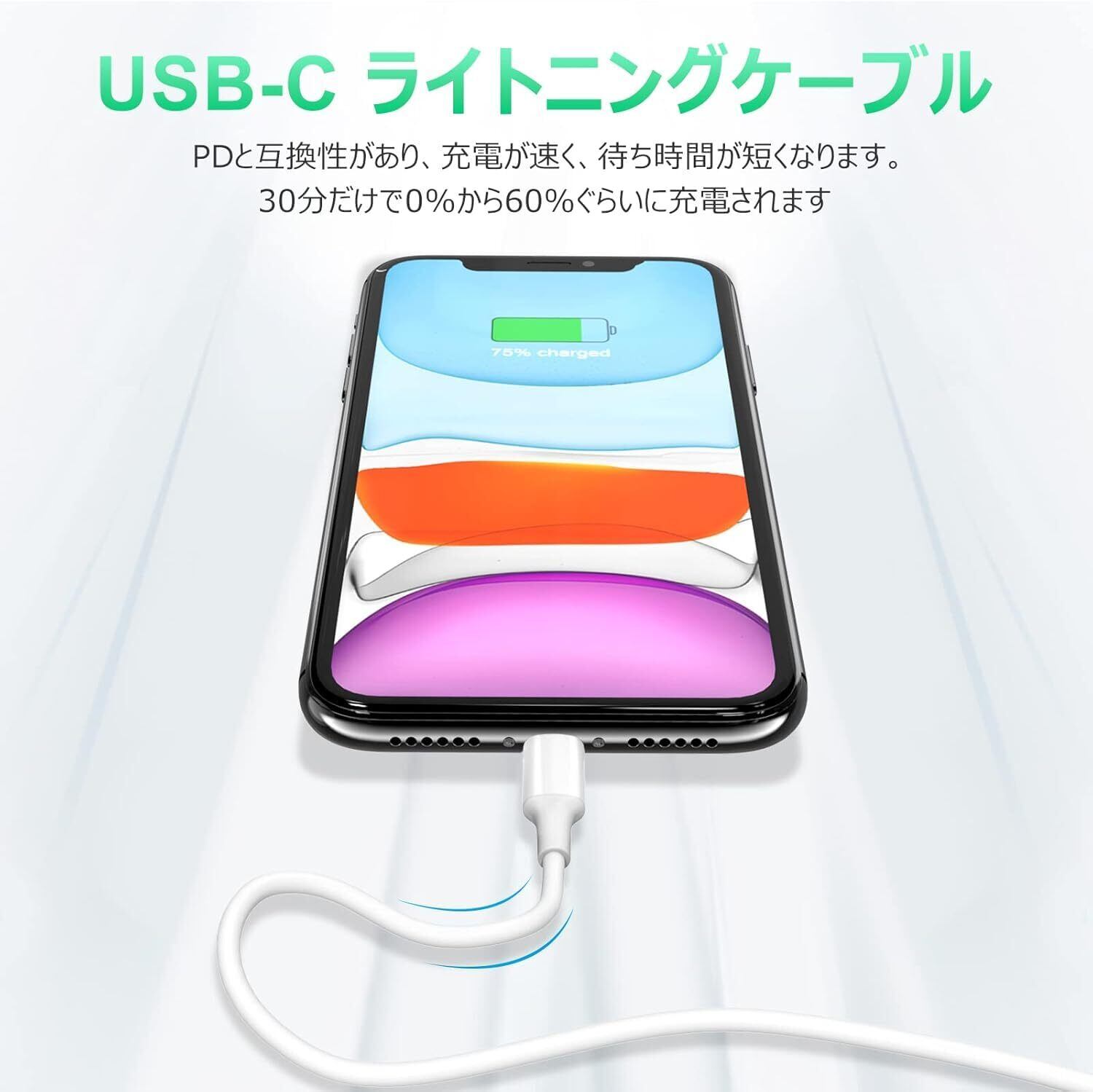 PD急速充電: のタイプC iPhone充電ケーブルはPower Delivery規格に対応しており、最大3A(max)までの急速充電に対応しています、USB-C 充電器と組み合わせると、iPhone をすばやく充電できます。iPhone 13 を 30 分で 0% から 50% まで充電できます