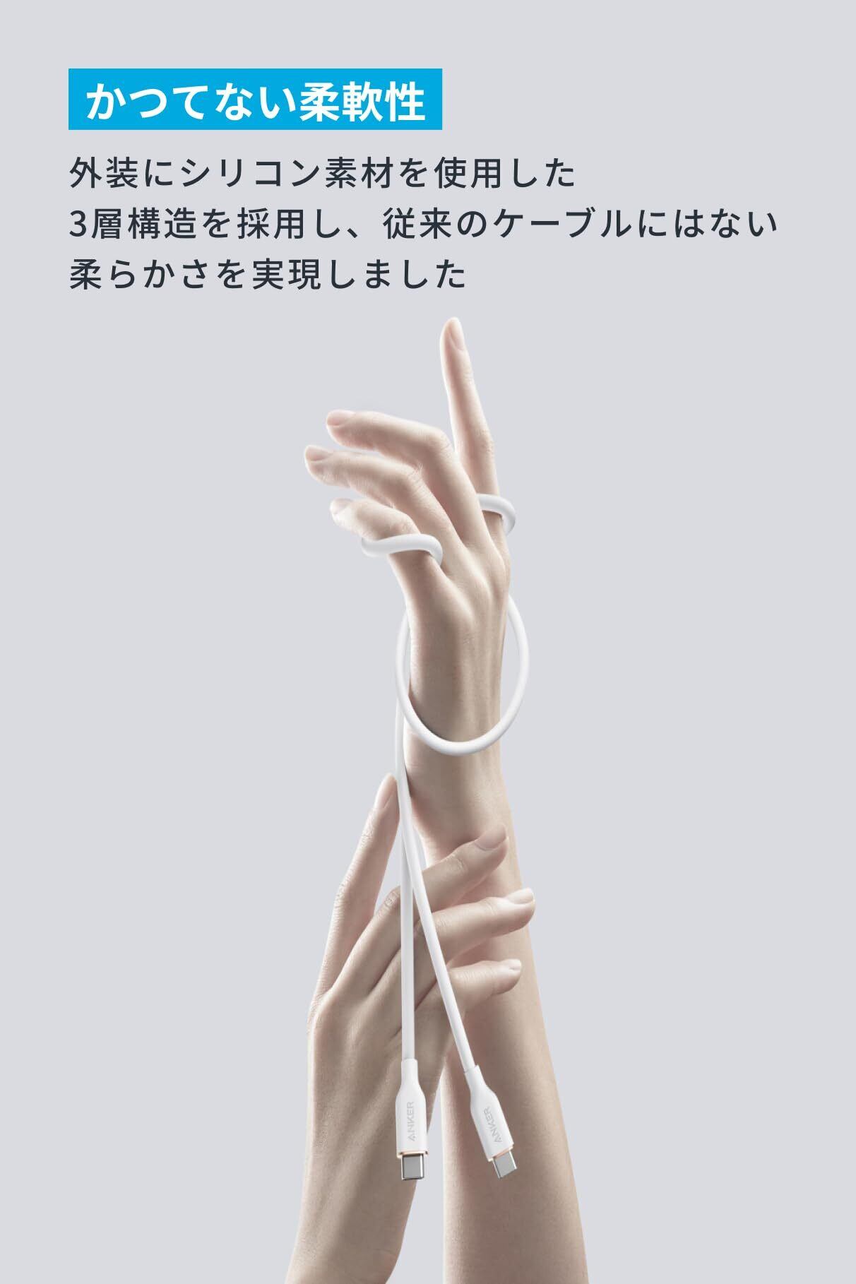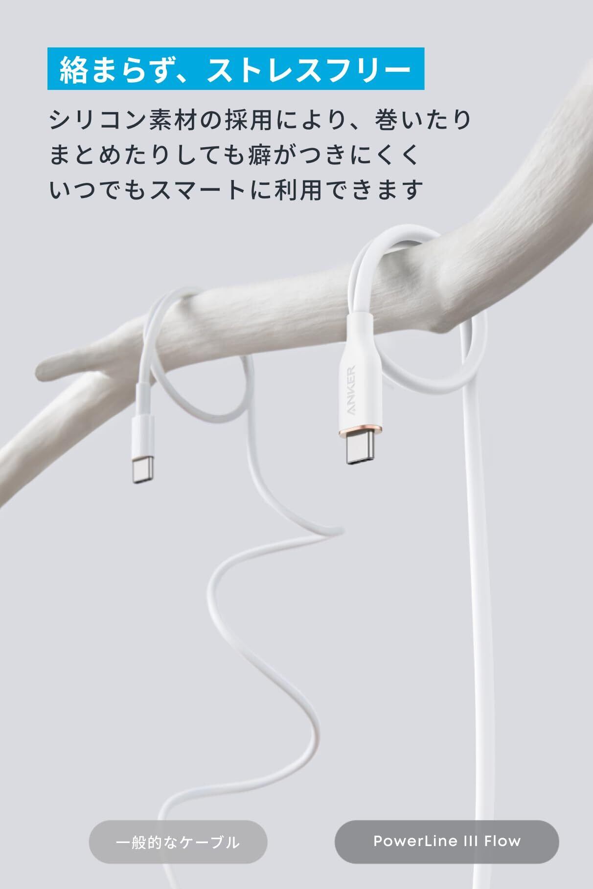 Anker PowerLine III Flow USB-C & USB-C ケーブル Anker絡まないケーブル 240W 結束バンド付き USB PD対応 シリコン素材採用 iPhone 16 / 15 Galaxy iPad Pro MacBook Pro/Air 各種対応 (0.9m クラウドホワイト)