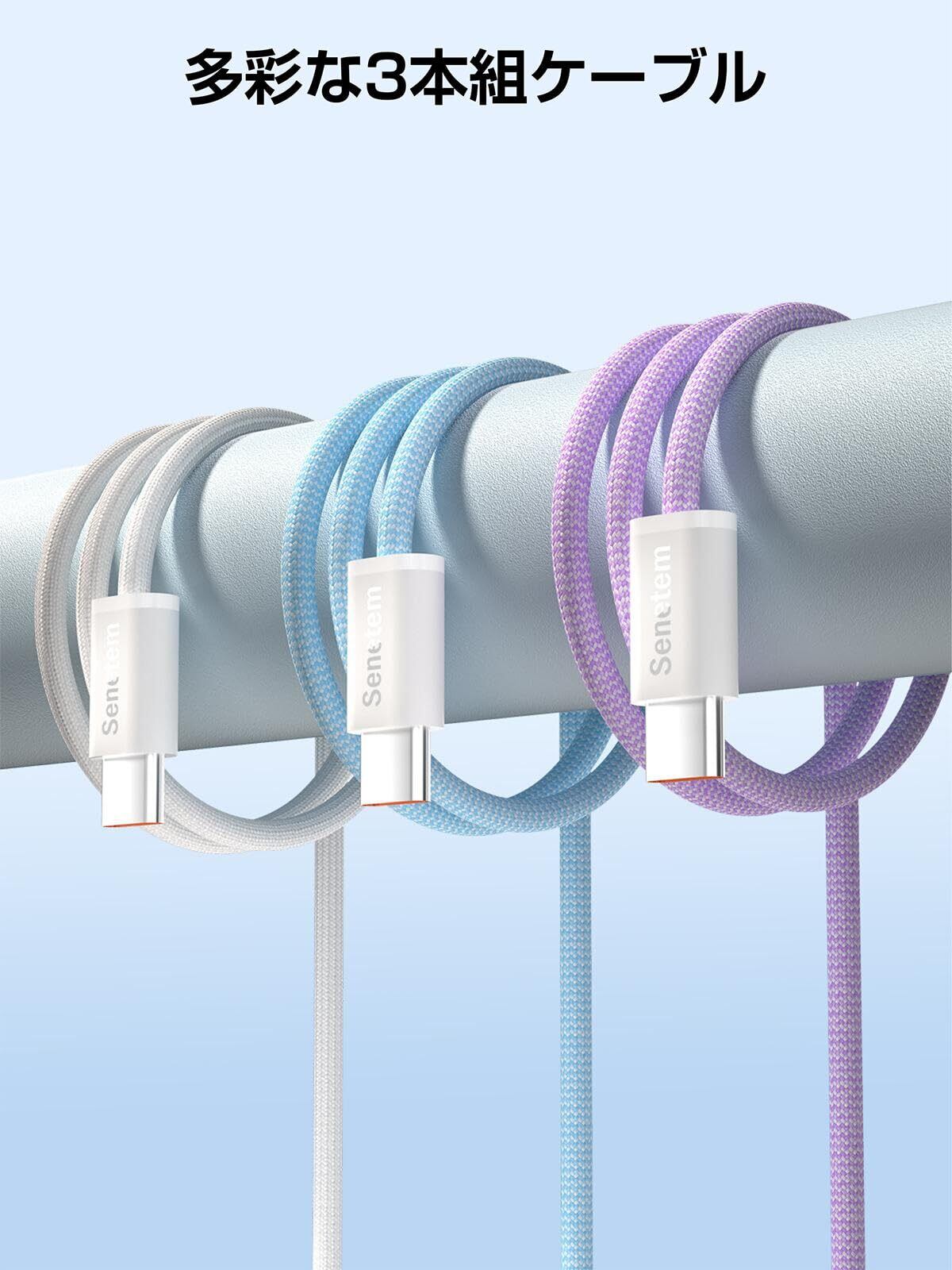 Senetem USB Type C ケーブル 【2m+2m+2m 3本】 タイプc ケーブル 3A急速充電 cタイプ 充電ケーブル QuickCharge3.0対応 iPhone16/iPhone15/GalaxyS24/Pixel/Google/Xperia/LG等USB-C 機種対応