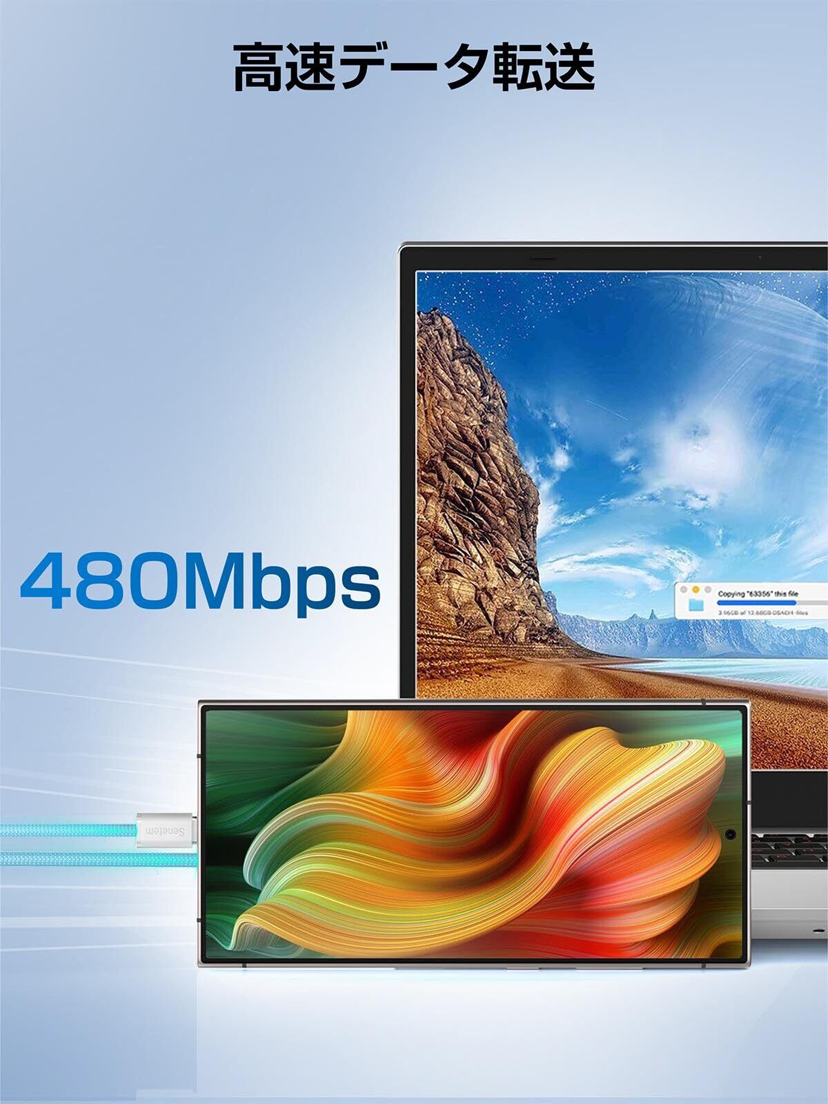 快適なQC3.0急速充電: このタイプc充電ケーブルはQC3.0対応し、高速充電実現が可能でフルスピードで充電をご提供しております、もっと便利なスマート生活に浸ります。USB2.0基準、最大480Mbpsのデータ転送速度をサポートし、1GBのファイルを数秒間で転送完了します。