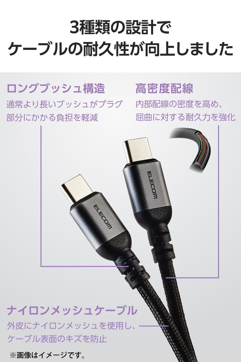 ■スマートフォンもパソコンも、これ1本で高速充電。断線に強い高耐久のUSB Type-C(TM) - USB Type-Cケーブルです。