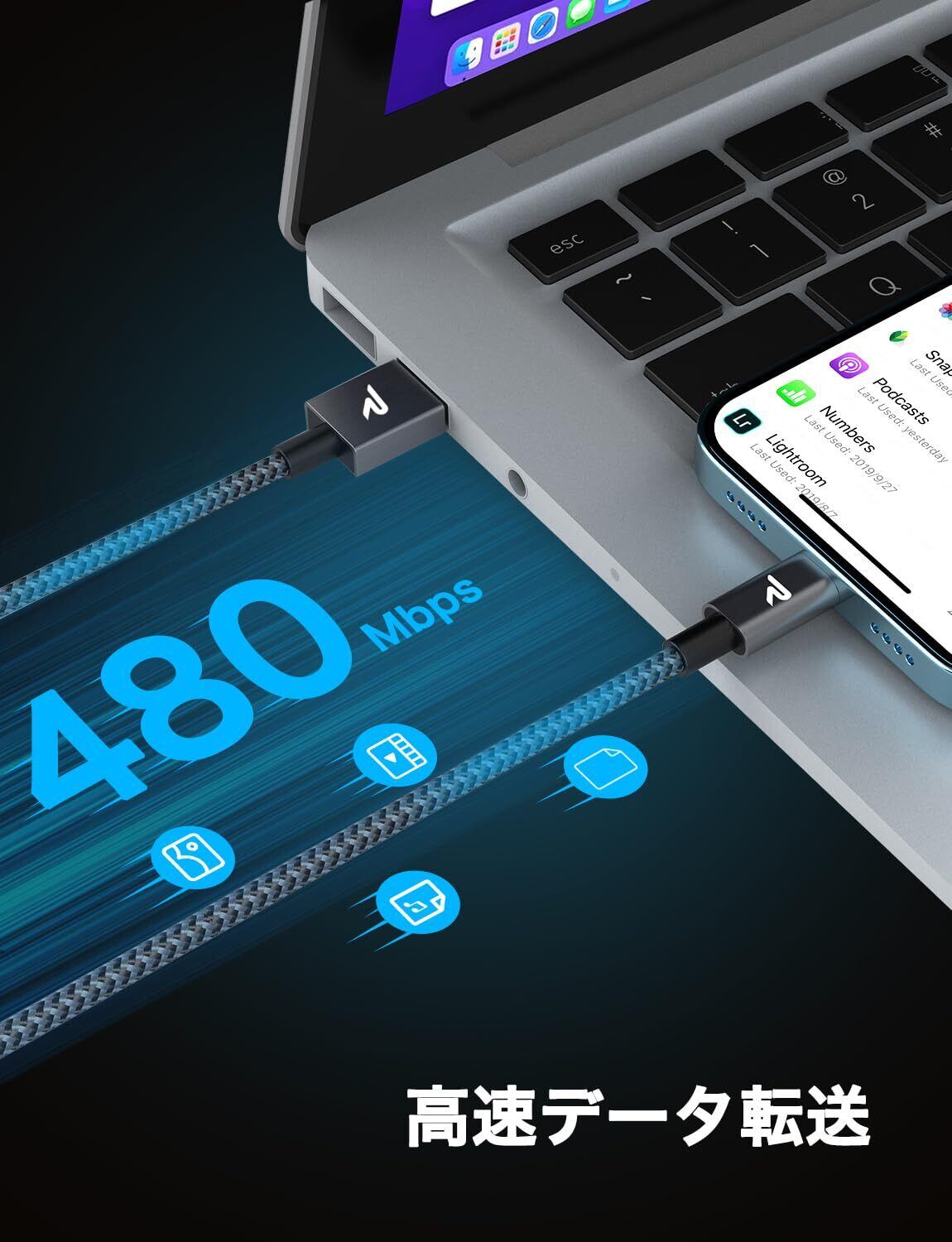 【急速充電とデータ同期】最大3A電流まで対応し、純正iphone充電ケーブルより充電スピードUP!USB 2.0経由で480Mbitsまでデータ転送可能です。iPhone、iPad、iPod、AirPodsなど、ほとんどのApple社の製品にご使用頂けます。