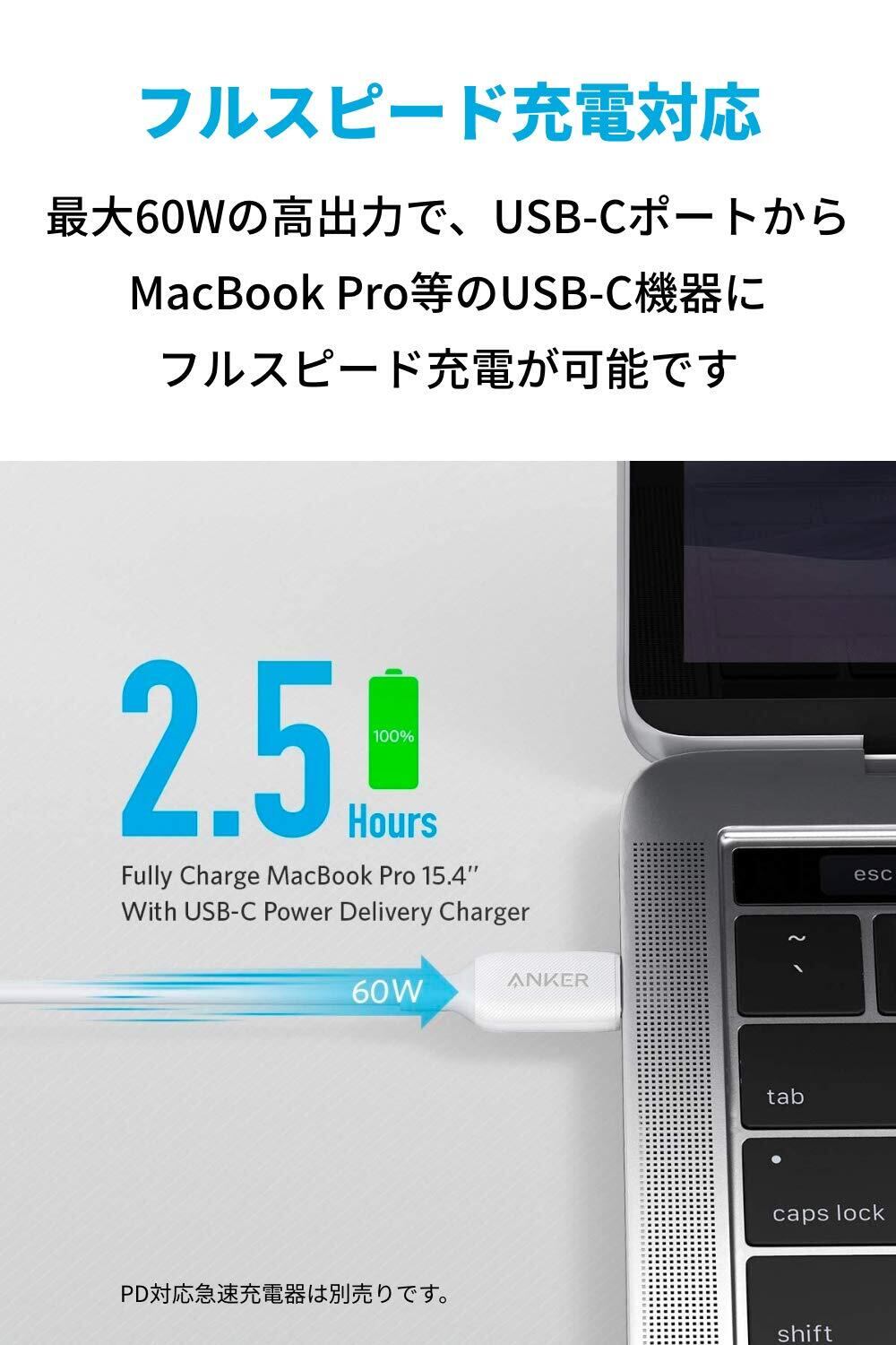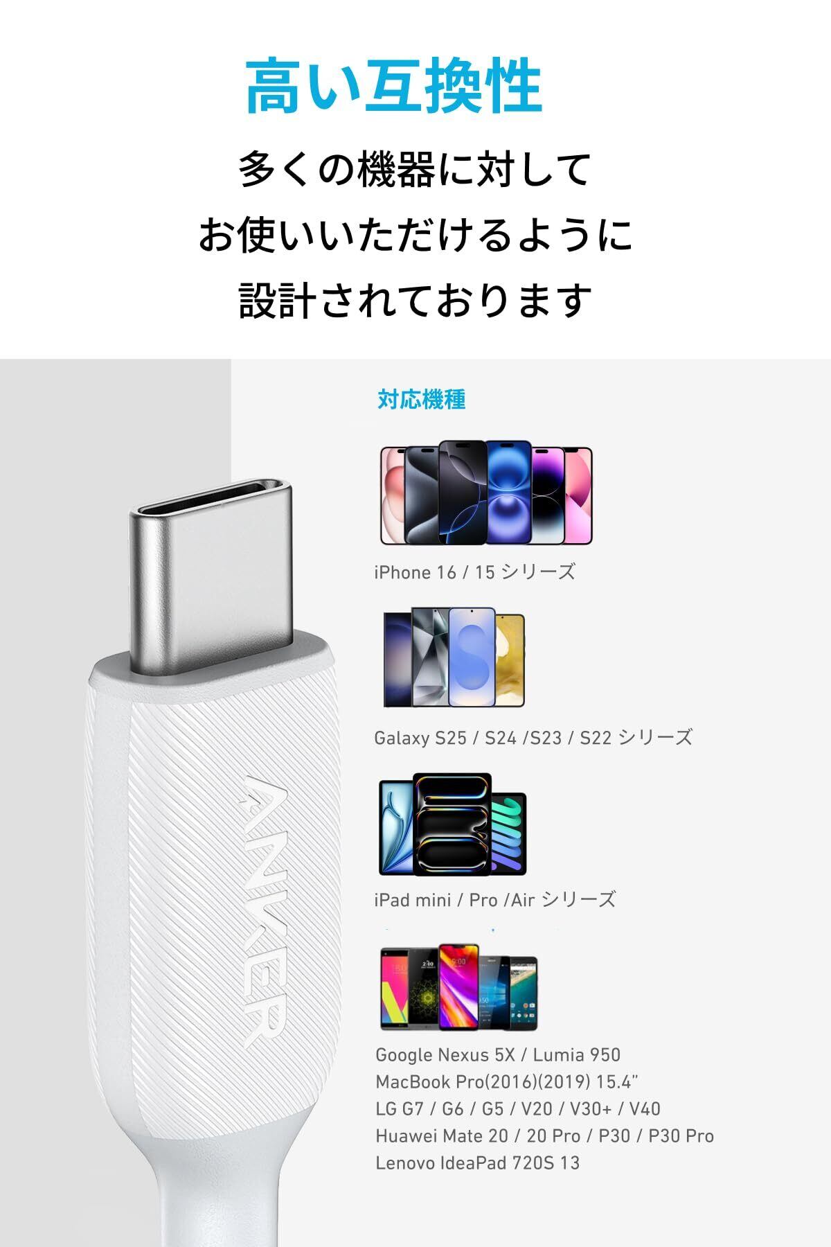 Anker PowerLine III USB-C & USB-C 2.0 ケーブル (1.8m ホワイト) 超高耐久 60W USB PD対応 iPhone 16 / 15 MacBook Pro/Air iPad Pro Galaxy 等対応