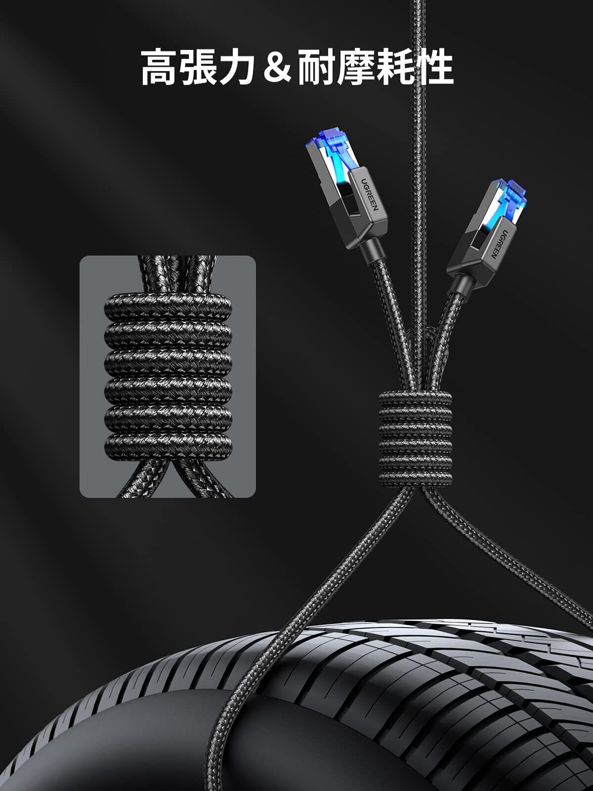 UGREEN LANケーブル 2M メッシュ カテゴリー8 コネクタ 超光速40Gbps/2000MHz CAT8準拠 イーサネットケーブル 爪折れ防止 シールド モデム ルータ PS3 PS4 Xbox等に対応