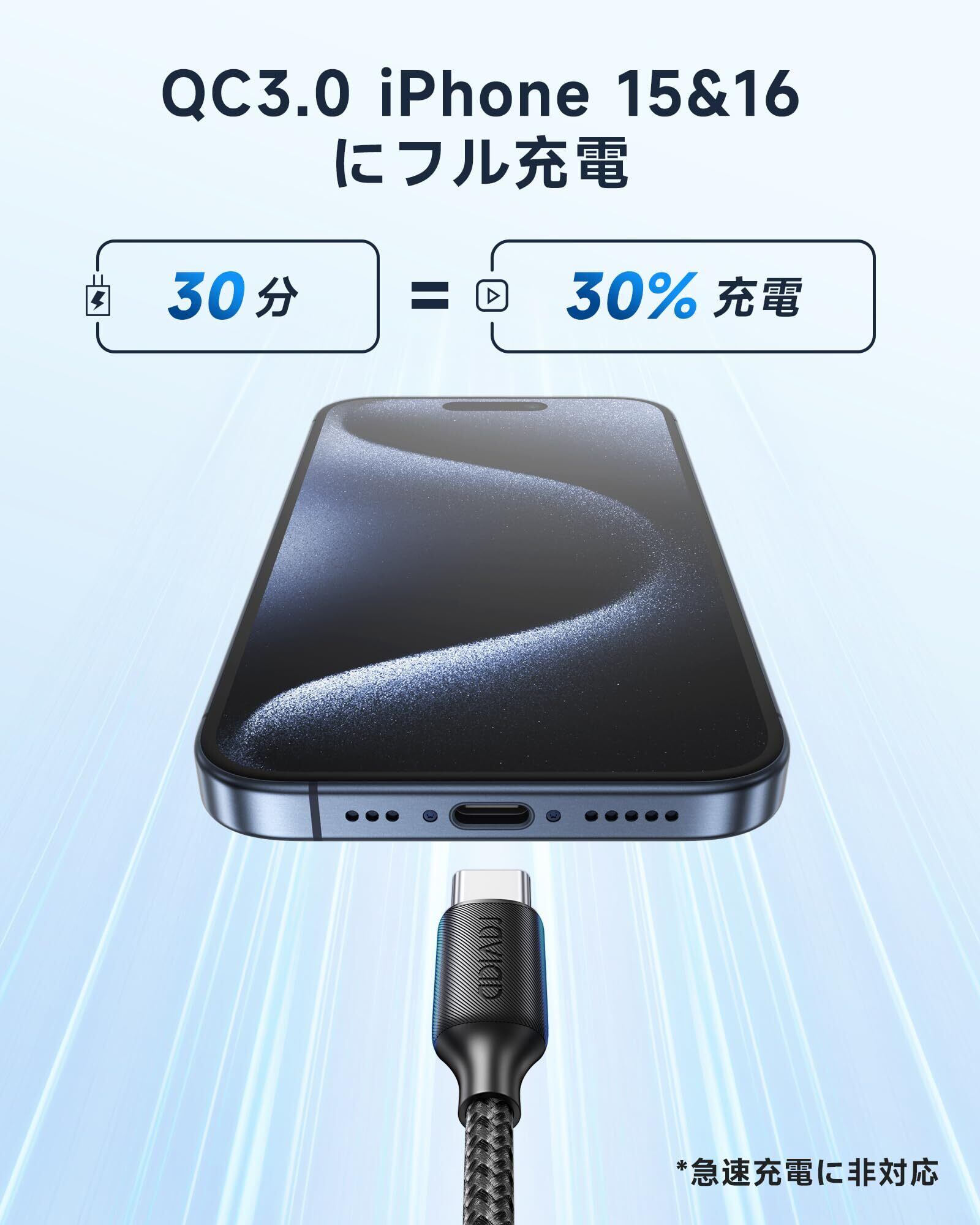 【QC3.0急速充電・データ転送】USB C ケーブルは時間を節約し、最大5V/3Aの最大充電速度をするように設計されています。お使いのスマートフォンやタブレットなどのデバイスを短時間でフル充電し、貴重な時間を節約できます。急いでいる時でも便利で利用できます。USB2.0基準、最大480Mbpsのデータ転送速度です、1GBのファイルを数秒間で転送完了します。(注意: 当製品は SuperCharge、DASH Charge、 Moto TurboPower Technology 充電に適していません。)