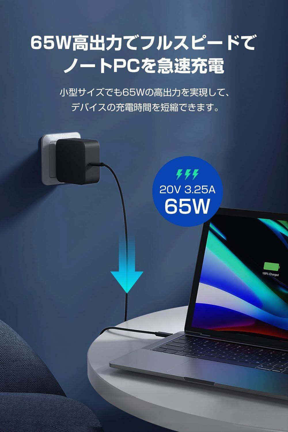 ノートパソコン 充電器 type-c PD 65w Macbook pro/レノボ/Lenovo交換用充電器【GaN+(窒化ガリウム)採用/PD 65w/45w急速/1.5mType-Cケーブル一体型/折畳式プラグ/PSE】acアダプター Mac電源アダプタ 軽量 持ち運び Switch/Mac Book Pro 各種USB-C機器対応