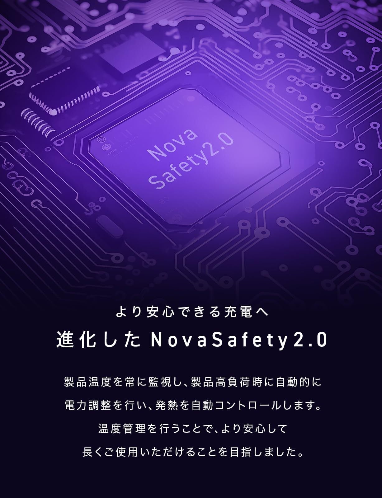 【電力を最適に振り分け NovaIntelligenceを搭載】接続された端末に合わせて電力を自動で調整する独自の技術 NovaIntelligence を搭載。ポートの出力を気にしながらデバイスを繋ぐ必要がなく、同時充電時もストレスなく快適に充電が可能です。※Nova Intelligenceの仕様は急速充電早見表(画像)をご確認ください。