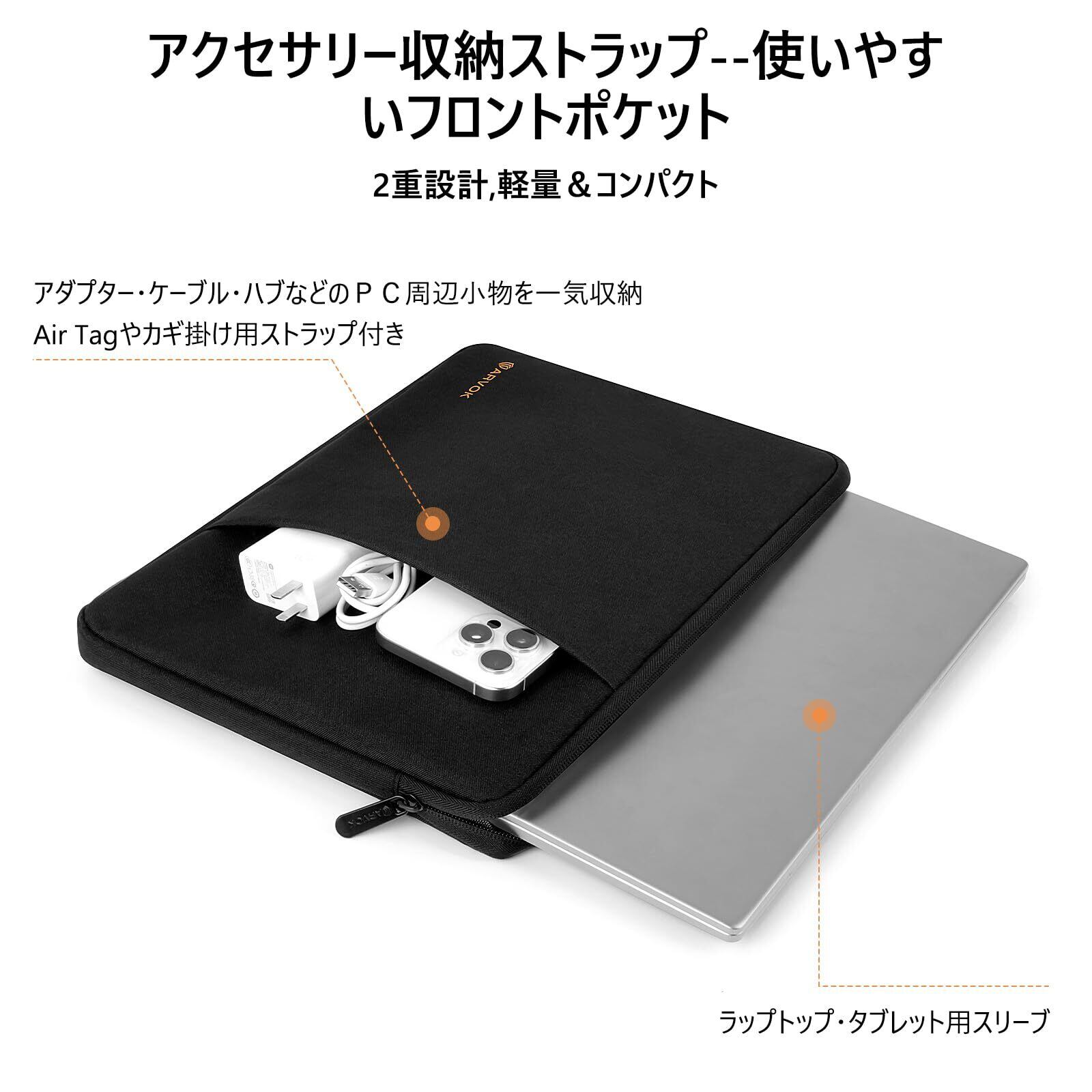 【使いやすいフロントポケット】ノートPC以外も持ち回る必需品が必ずあります。ジッパー型フロントポケットはKindle、アダプター、ケーブル、マウス、ハブ、USBメモリ、イヤホンなどのPC周辺小物を一気に収納できます。AirTagや鍵掛け用ストラップ付。この軽量でコンパクトなラップトップ保護ケースは他のショルダーバッグ、バックパックに簡単に収納できます。