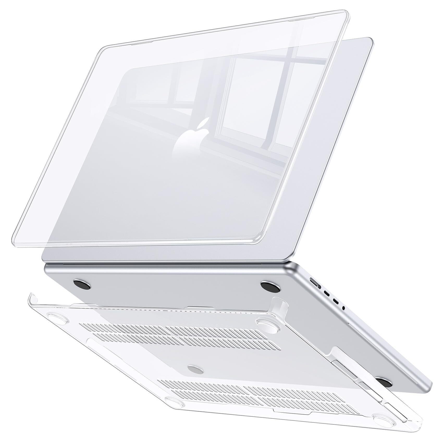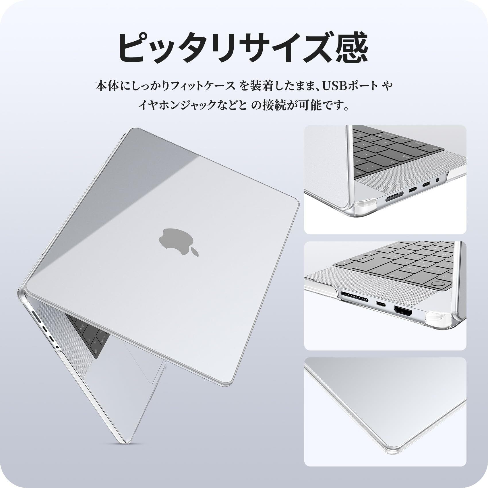シンプルなデザイン:上下のカバーが分離しており、単体での使用も可能。表面のマークは透けて見えるデザインで、MacBookの美しさをそのまま楽しめます。実機に基づき作られており、本体の開閉に影響することありません。