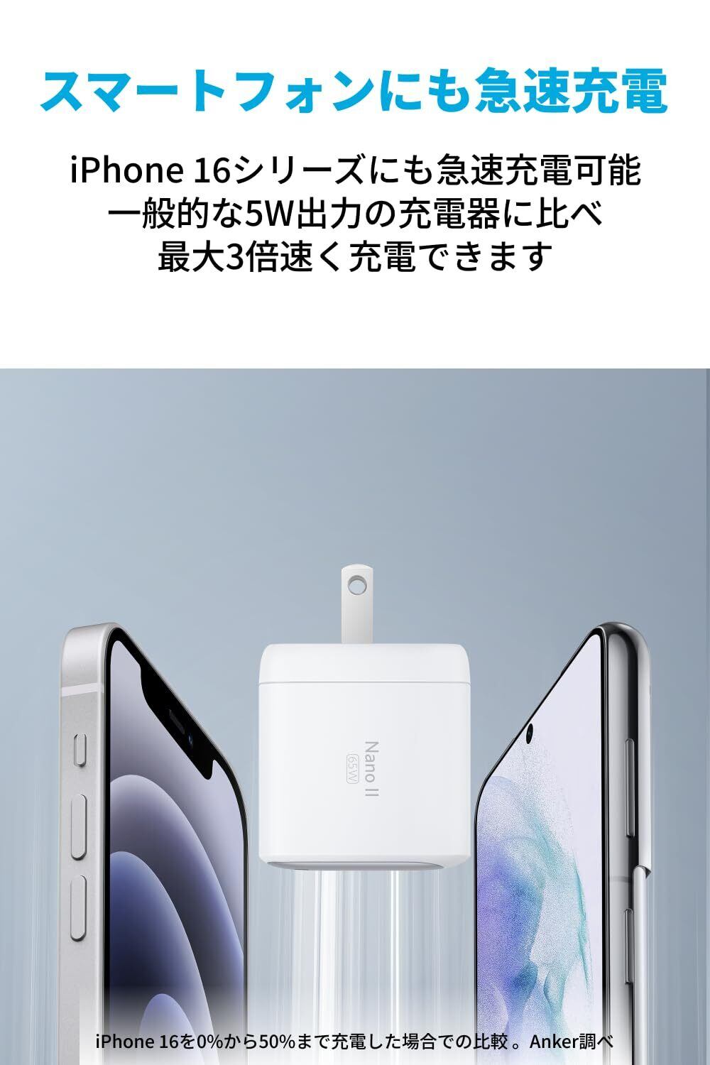 Anker Nano II 65W (PD 充電器 USB-C)【独自技術Anker GaN II採用/PD対応/PSE技術基準適合/折りたたみ式プラグ】MacBook Windows PC iPad iPhone Galaxy Android スマートフォン ノートPC 各種 その他機器対応 (ホワイト)