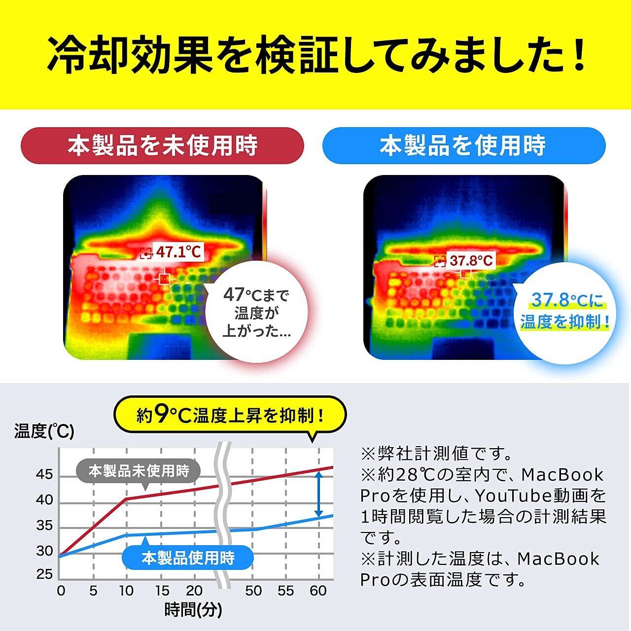 冷却面のサイズは幅35×奥行22.5cmです。最大15.6インチ程度までの様々なサイズのノートパソコンやタブレット等にも使用できます。