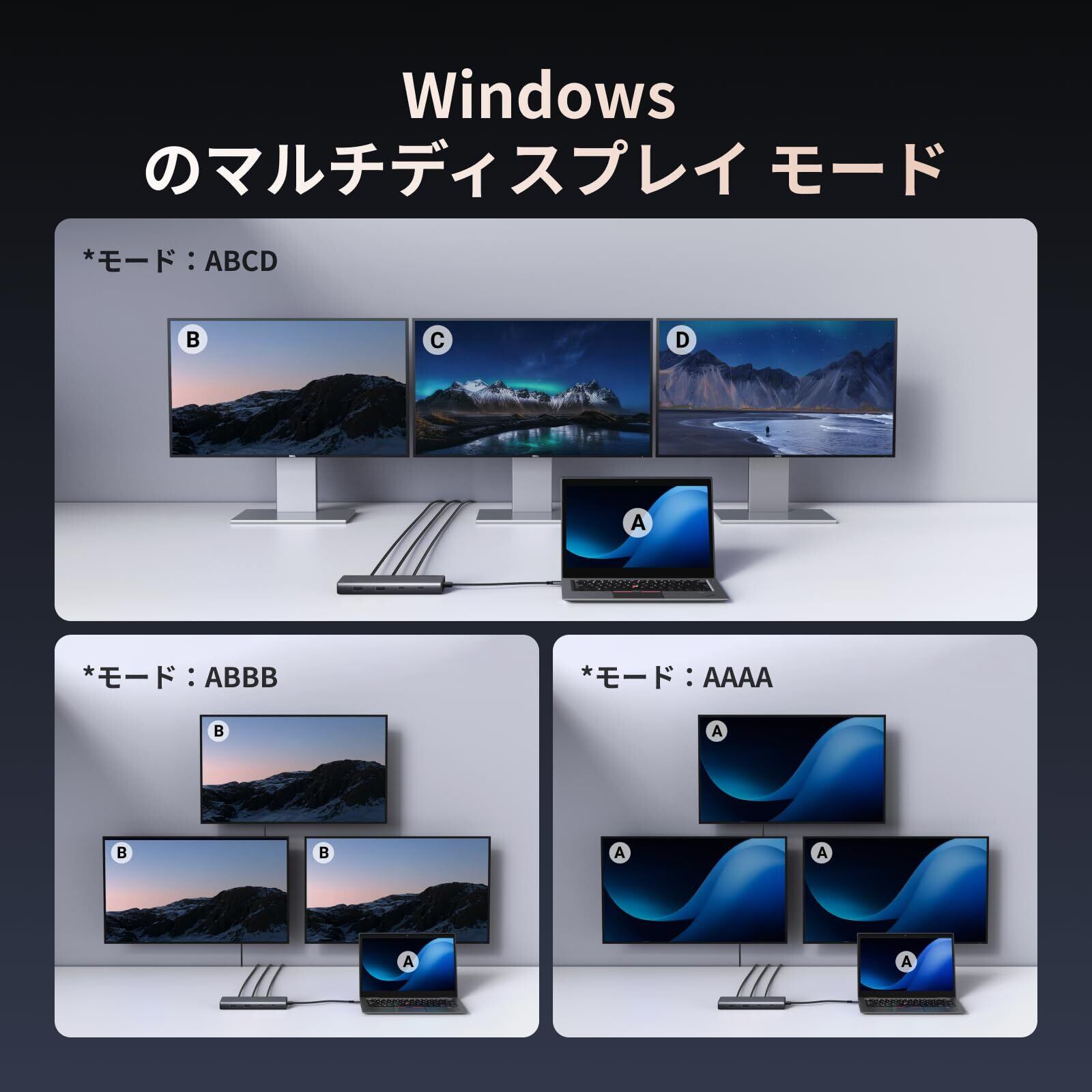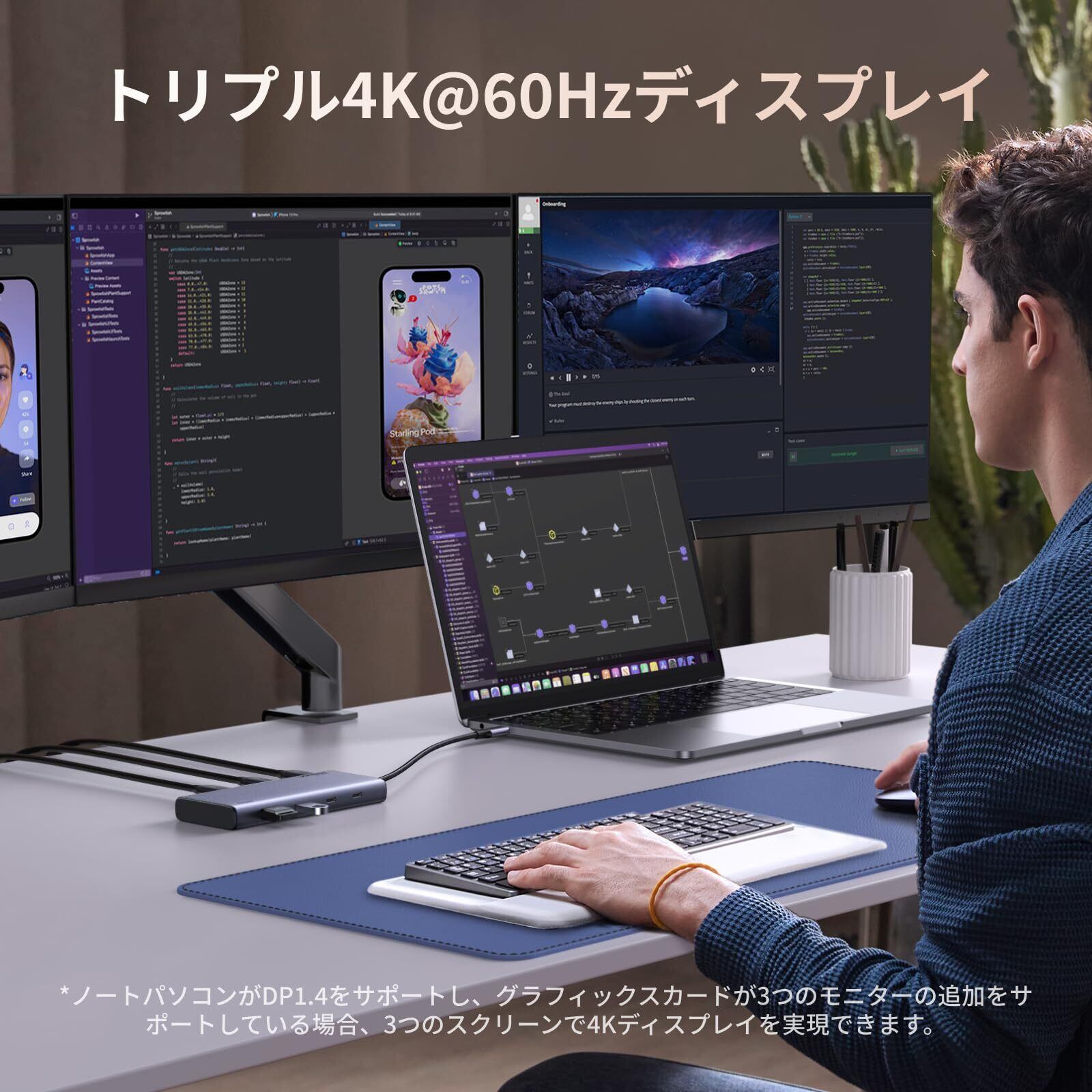 UGREEN Revodok USB-C ハブ ドッキングステーション 3画面出力 HDMI *2 +DP 最大4K@60Hz 出力 10GbpsUSB C& A 高速データ転送ポート PD3.0 100W急速充電対応 ノートPC/タブレット/スマホ対応 MacBook/iMac/Galaxy/Dell/Oculus/Lenovo等に適用