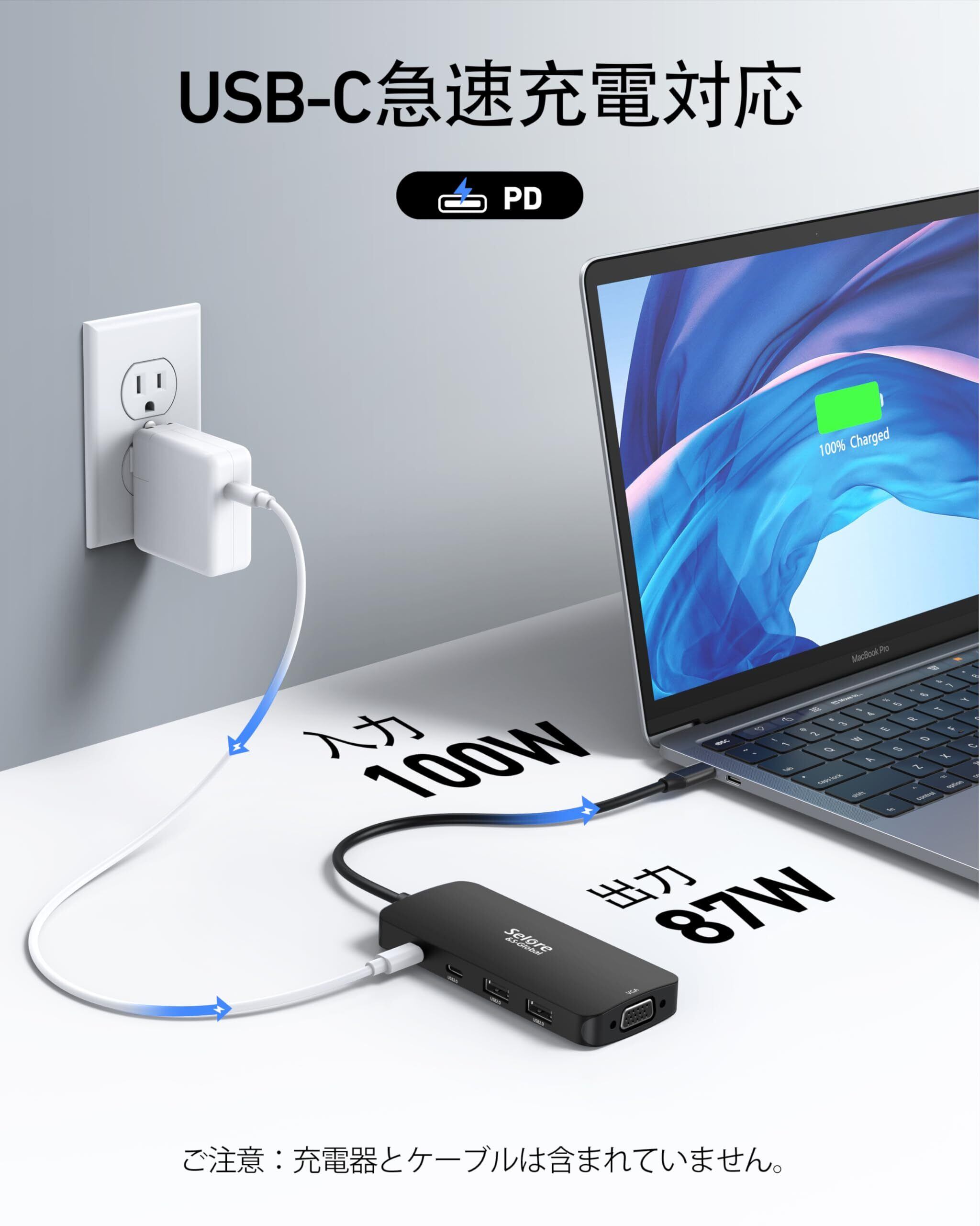 【PD 100W高速充電 & マルチポート接続】このドッキングステーション hdmi 2つは最大供給電力値100WのPDポート付き、usbハブを使用しながらパソコンに快速充電が可能で、充電切れの心配がなし。PDポートでPCを充電しながら、USB 2.0×2・Type-C 2.0ポートでマウス/キーボード/外付けHDDなどを接続可能。【ご注意】◆本製品を使用する場合は、電源を接続する必要(65W以上のPD充電器を使用し、ソースラップトップのUSB CポートはPDプロトコルをサポート。65W以下のACアダプタを使用する場合は、パソコンが充電モードに入らない場合があります。◆充電時はハブ消費分15Wを差し引き、PCへ最大85W供給(理論値)