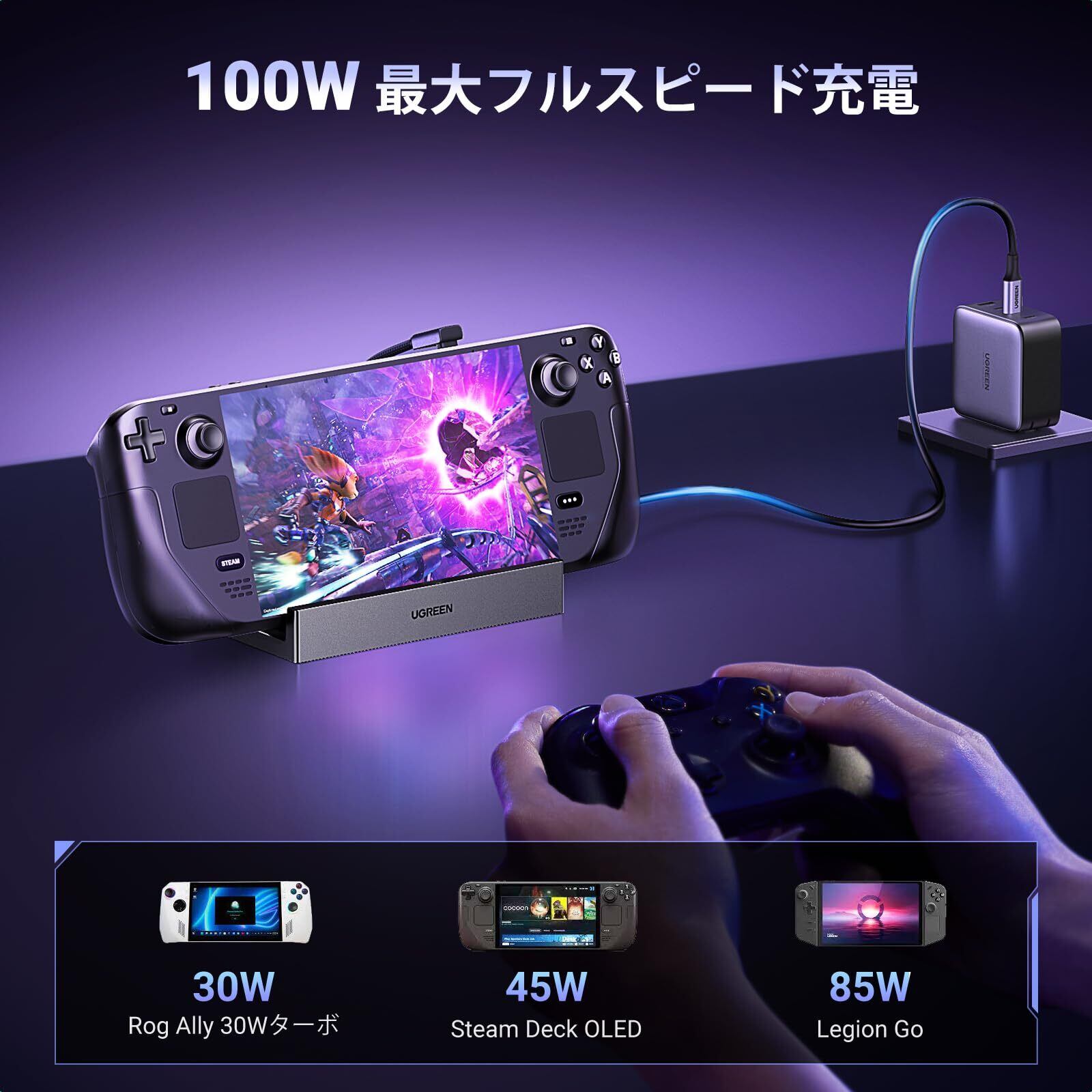 【100W PD急速充電 】この Steam deck/Switch用ドックはPD対応USB-Cポートが付属しています、Steam deck/Switchの充電にとても便利です。オリジナルの充電器は45Wので、オリジナルの45W充電器を使用して1時間で51%充電します。 プレイと充電を同時に行うことで、ゲームを中断することなく、楽しむことができます。注意:PD充電ポートはデータ転送や動画転送をサポートしていません。