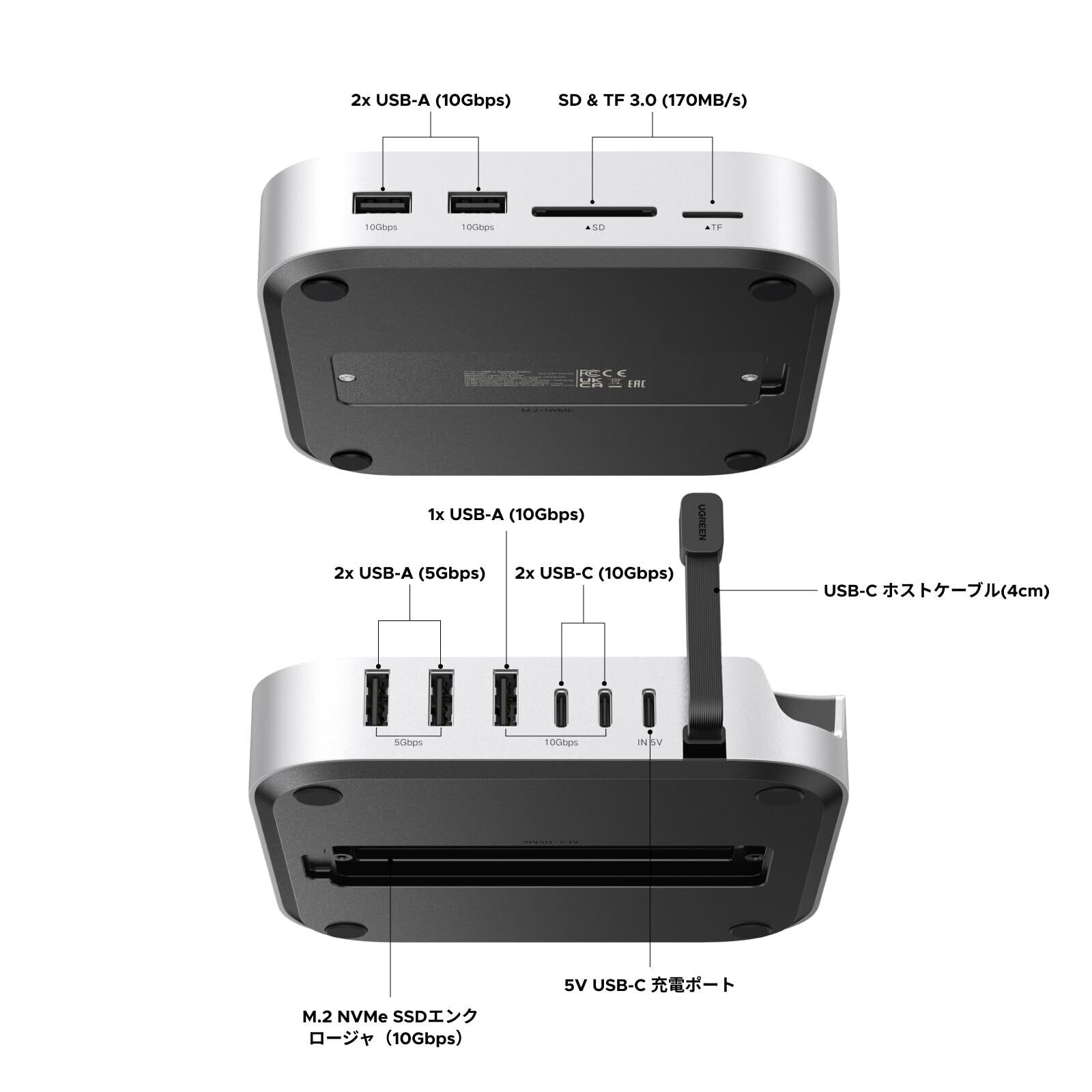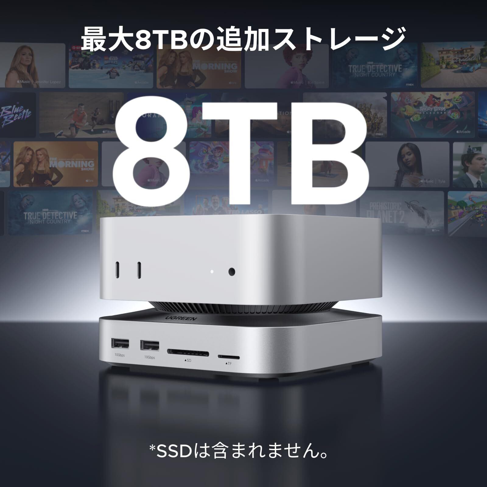 UGREEN Mac mini M4用 ドッキングステーション&スタンド|NVMe SSD拡張スロット搭載|USB-A×3(10Gbps)・USB-Cデータポート・SDカードリーダー対応|Mac mini M4 / M4 Pro専用