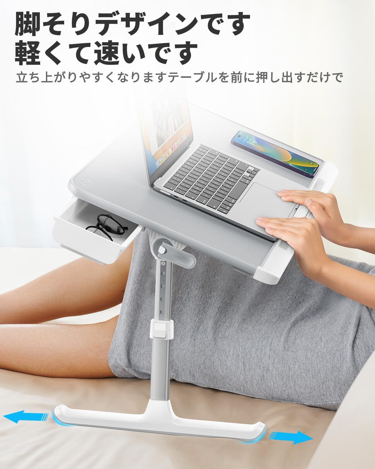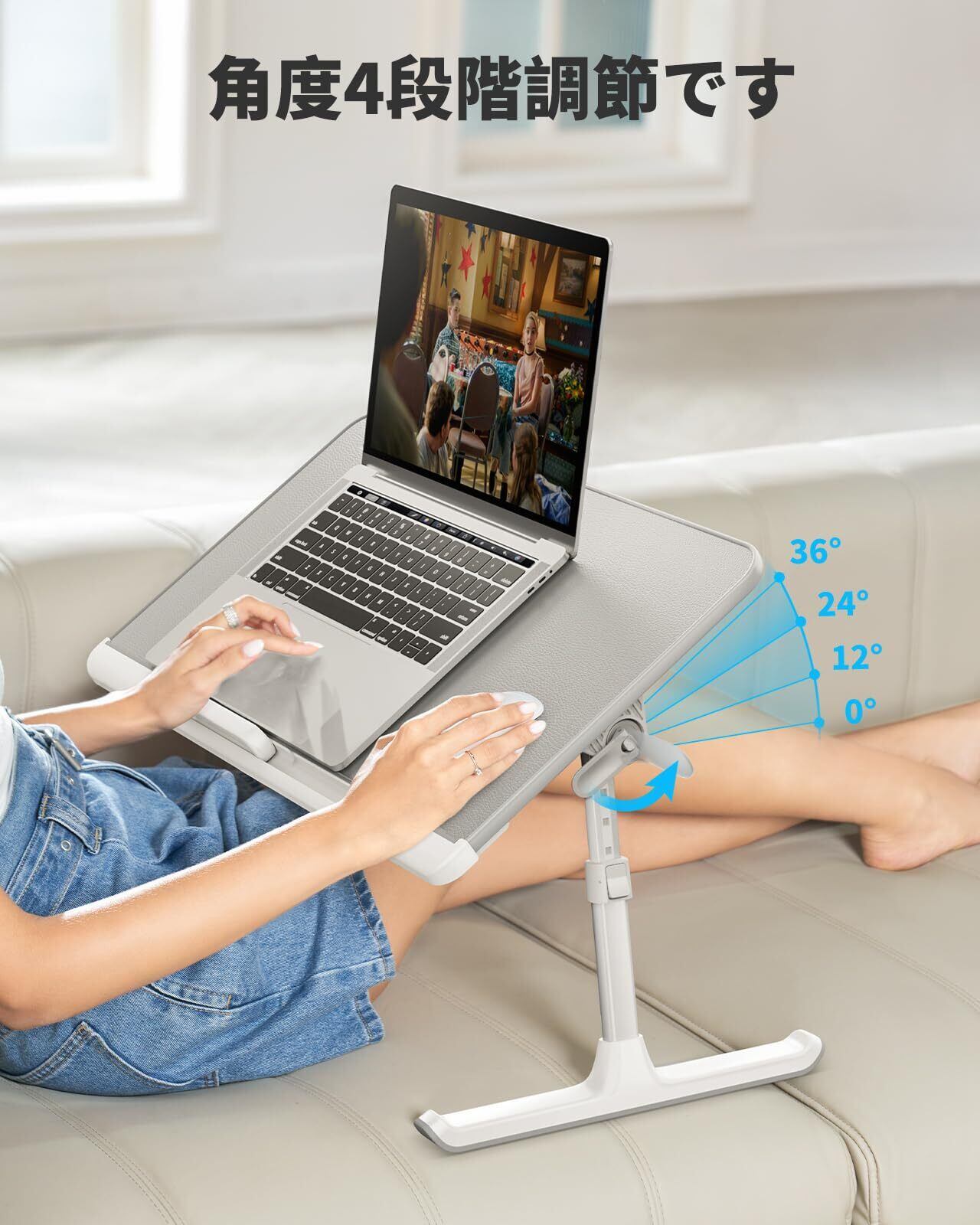 【高さ・角度調整】高さは24~33cmの5段階、角度は0~36度の4段階を調整でき、お好みや使用場面に合わ せて自由にお使い頂けます。天板の下には広々とした空間があるので、両足が自由に動け、お好きな体勢でゆった り過ごせます