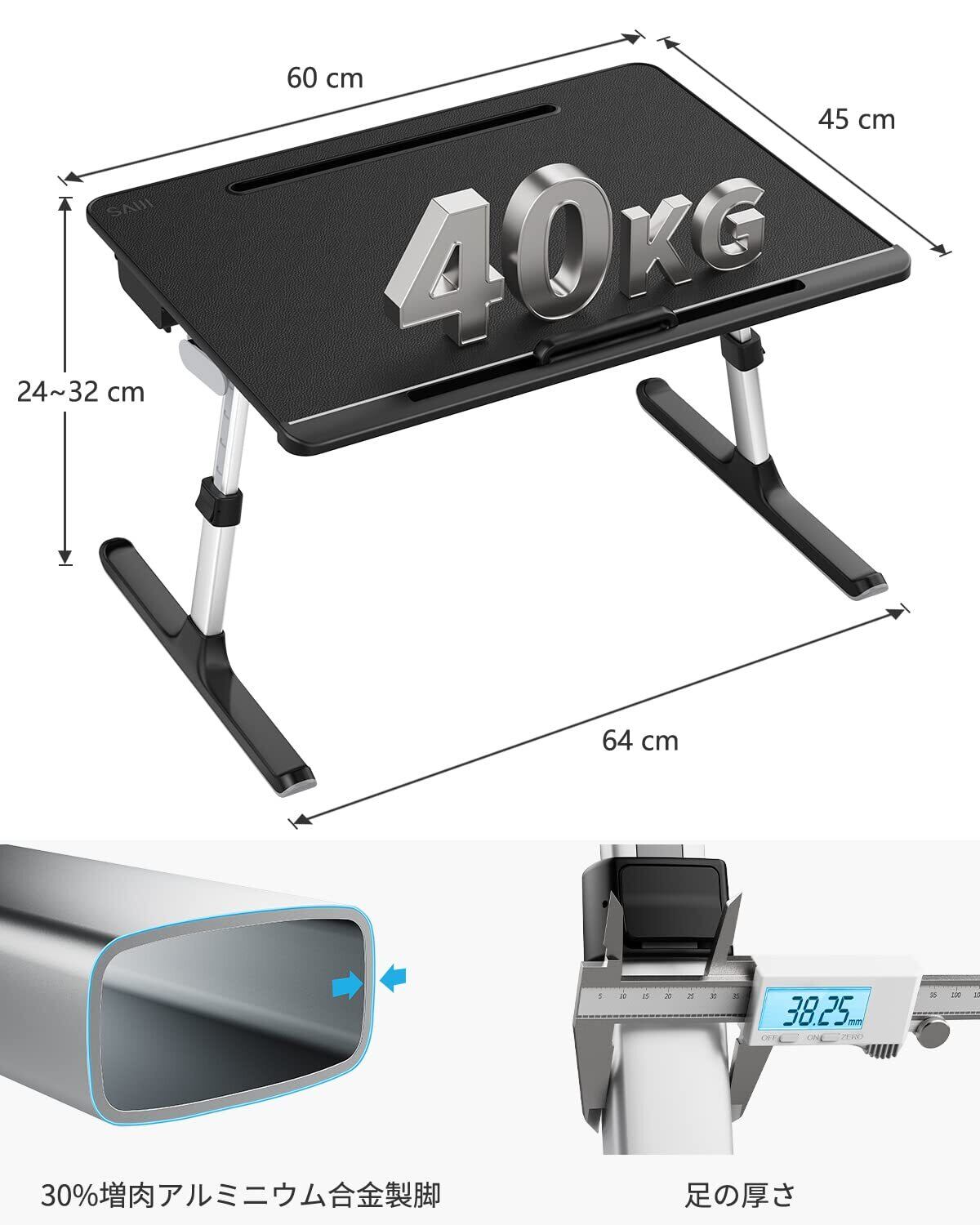 SAIJI 折りたたみ ミニテーブル「安定性強化版」机 ローテーブル ベッドテーブル ノートPCパソコン ちゃぶ台 大容量天板 角度 高さ調整 引き出し ブックスタンド付き 表面PVC加工 40kg荷重 軽量 勉強 食事 一人暮らし K7 (ブラック,60*45cm)