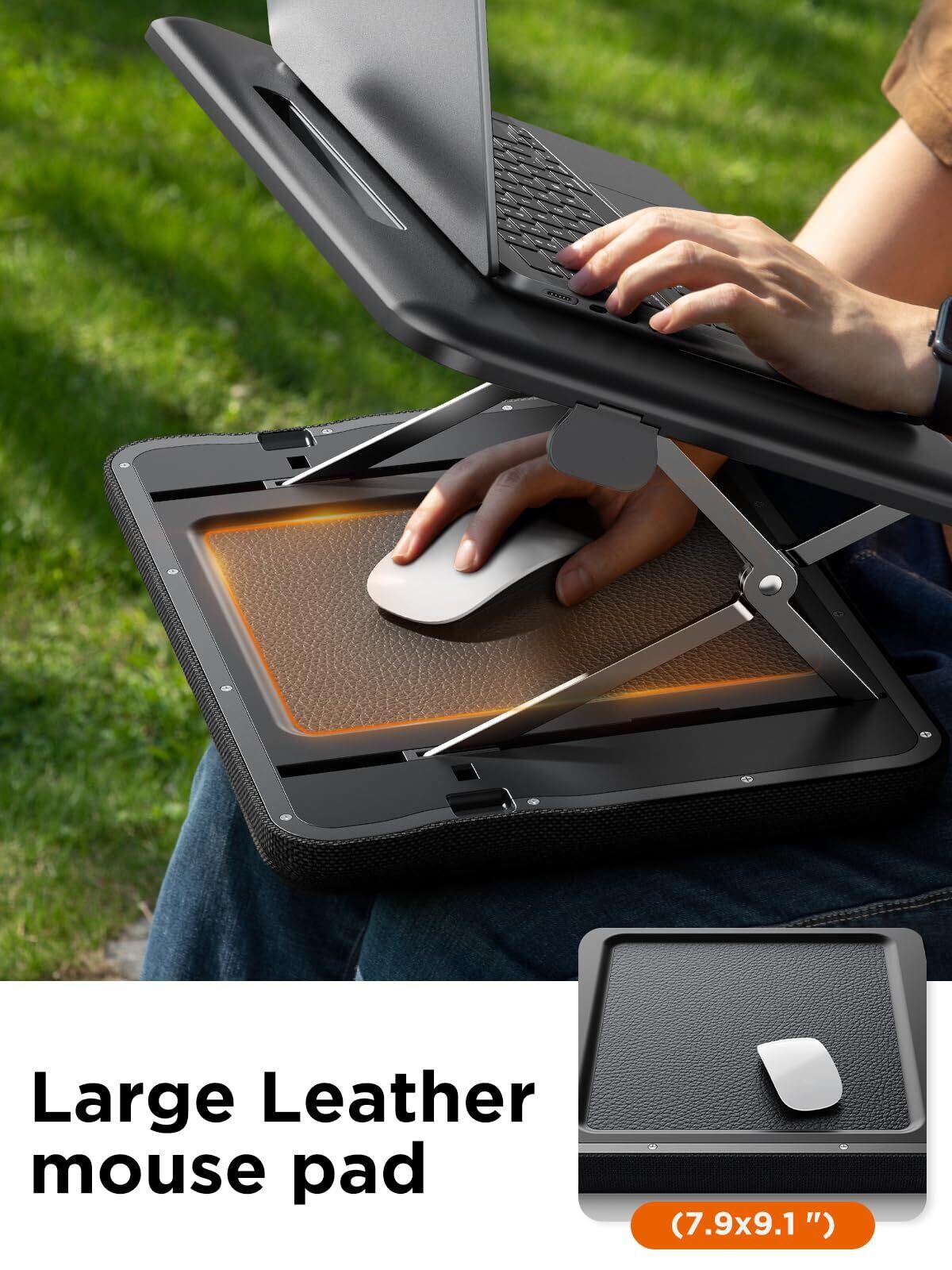 【携帯性と快適性】ハンドルと超軽量設計で持ち運びやすい膝上テーブル、わずか389gでどこにでも持ち運びできて、ベッドやソファーで快適な作業体験を提供します。