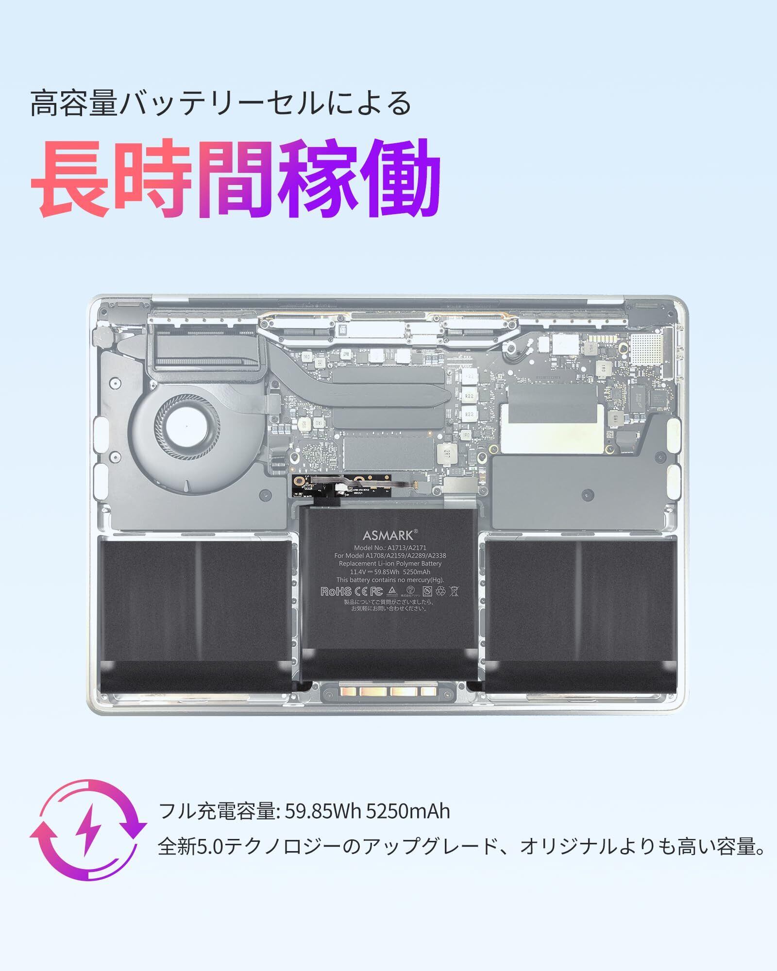 ASMARK Macbook Pro A1708 バッテリー 交換 適用 13インチ A1708(2016,2017) A2159(2019) A2289(2020) A2338(2020,2022) A2171/A1713 バッテリー 13-inch