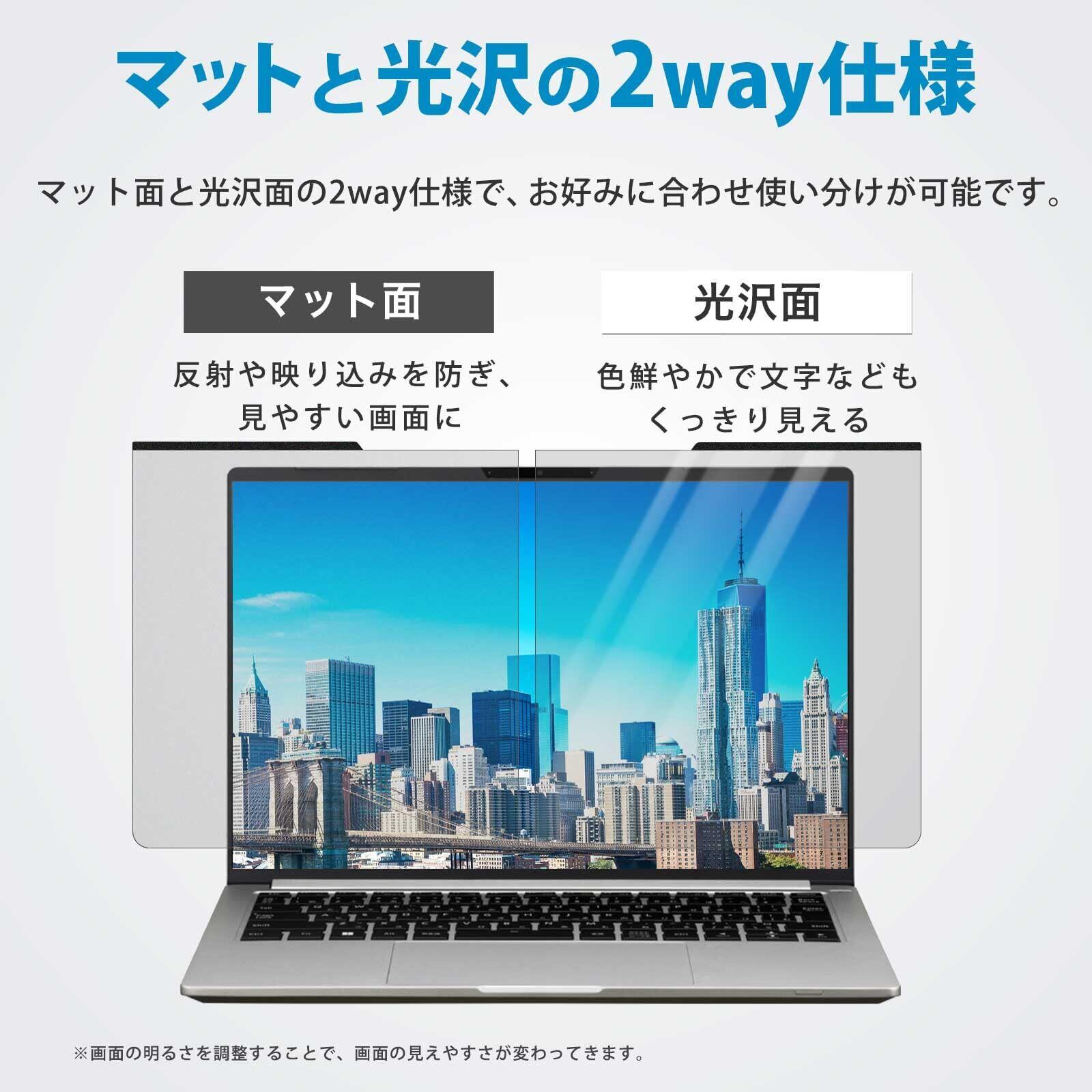 両面で使える:片面は反射防止(アンチグレア)機能があるので、太陽光や蛍光灯からの反射を抑え、映り込みを低減します、もう片面は光沢仕上げで写真や動画を鮮やかに表示させることができます。