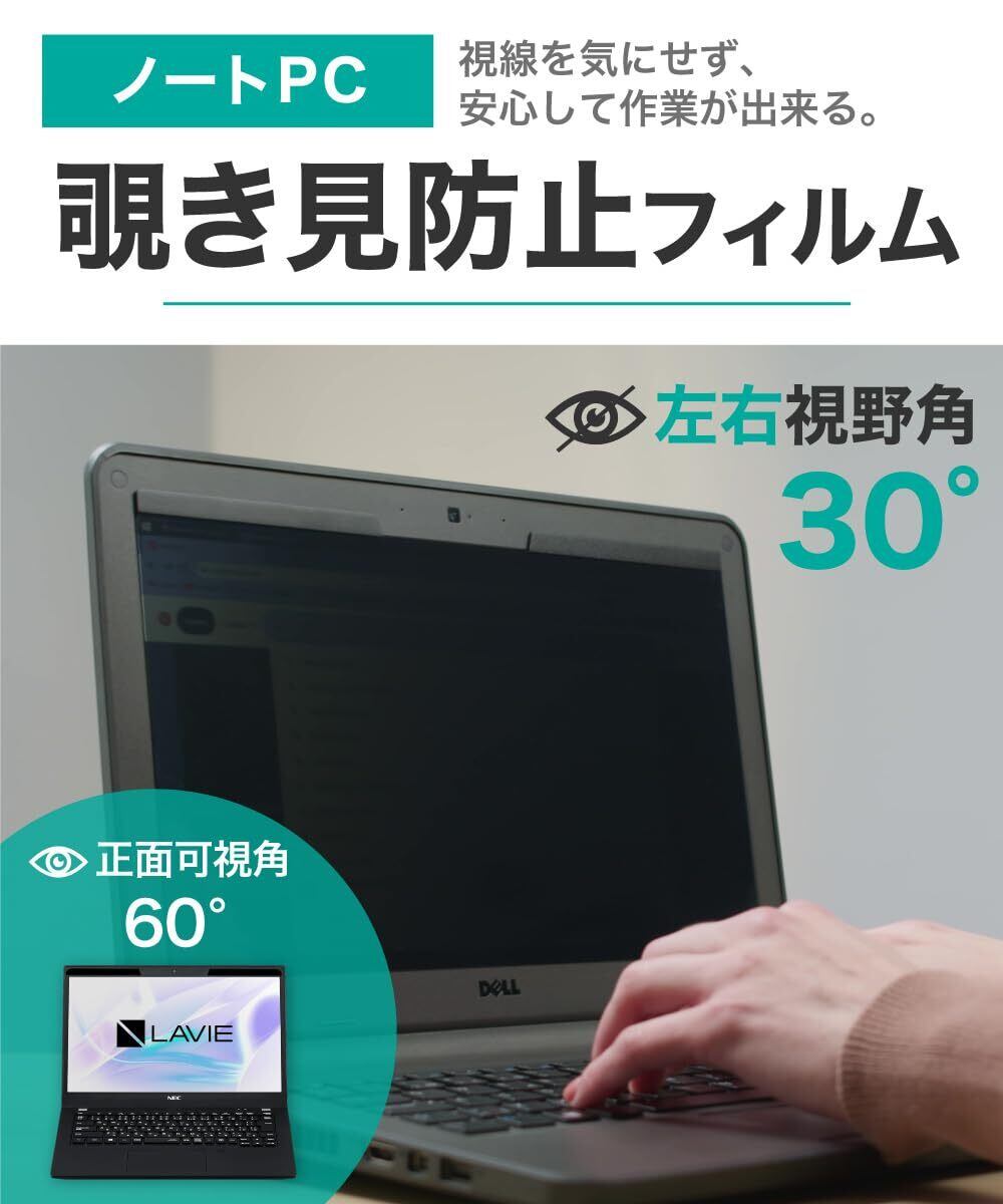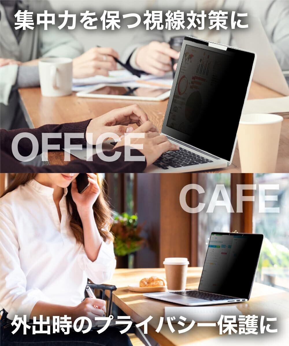 [プライバシー保護] 視野角 60度、正面から見れると画面はクリアでも、隣の席からは真っ暗に映る偏光性を有する「覗き見防止フィルター」です。