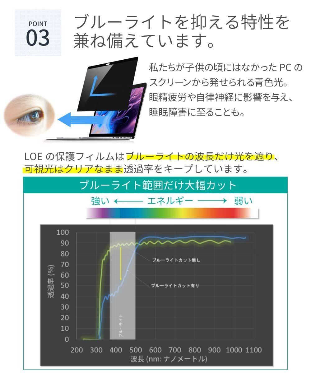[ ブルーライト半減 ] 私たちが子供の頃にはなかったノートパソコンのスクリーンから発せられる青色光。 毒性の強いブルーライトは眼精疲労や体内リズムへの影響が益々懸念されています。 本製品はブルーライトを約50%低減。将来のことを考えるならブルーライトカット対応フィルムがオススメです。