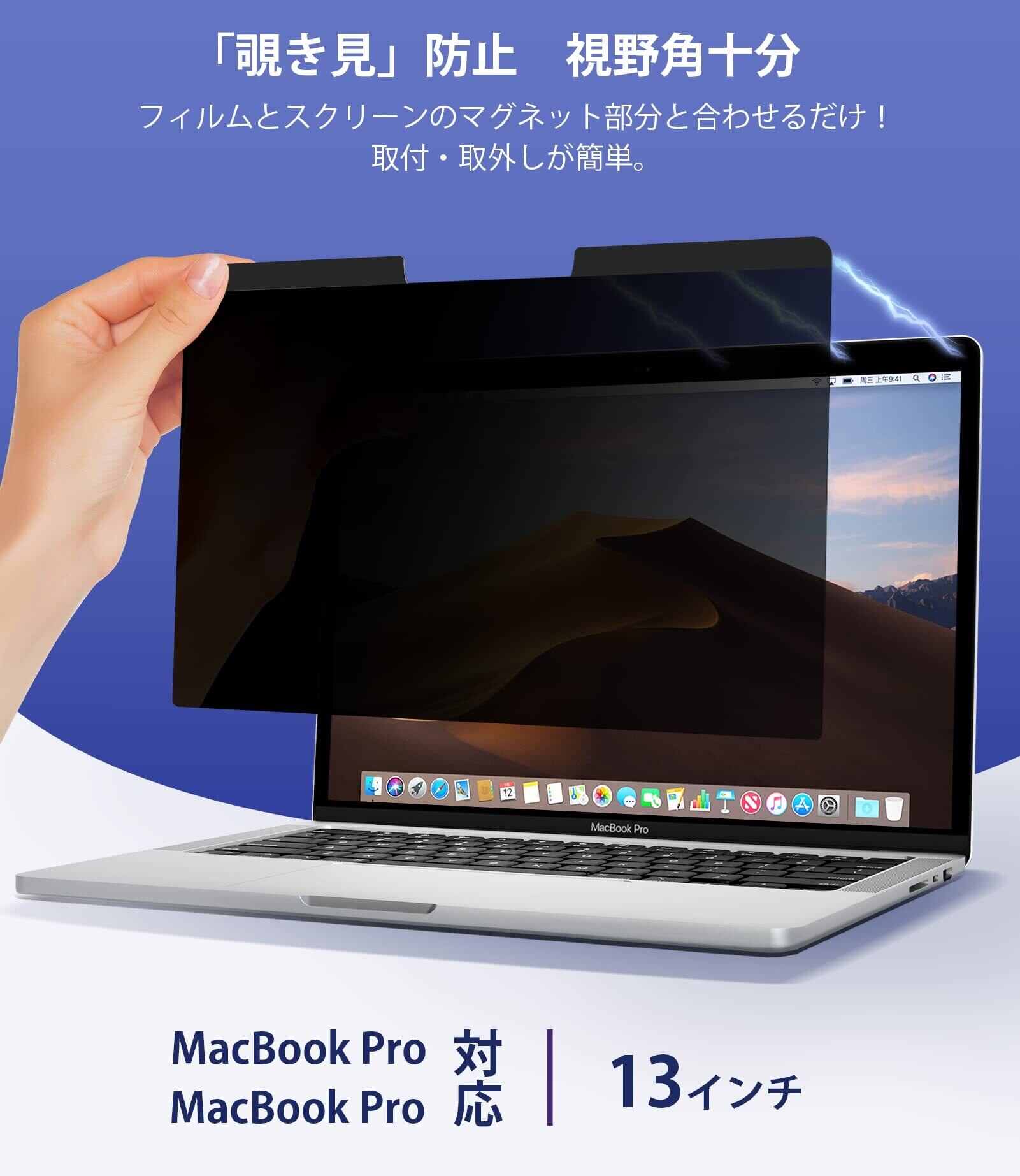 MacBook Air 13 / MacBook Pro 13 用 覗き見防止フィルター プライバシーを守る 保護フィルム マグネットタイプ ブルーライトカット のぞき見防止フィルム 反射防止 キズ防止 両面使用 着脱簡単 Mamol
