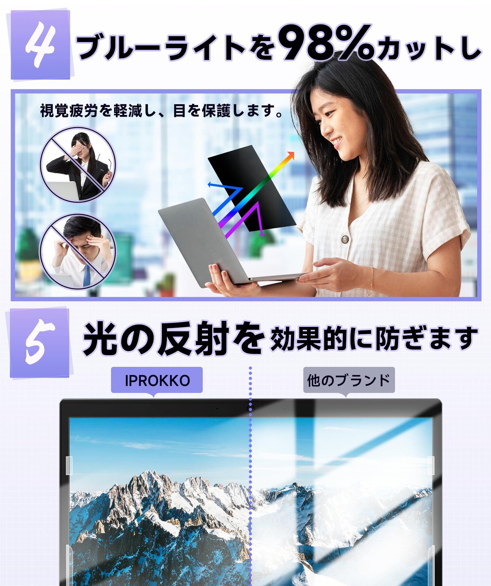 IPROKKO 13.3インチ (16:10) パソコン 覗き見防止フィルター 保護フィルム ブルーライトカット 反射防止 取り外し可能フィルム Lenovo/Dell/HP/東芝/富士通/Asus などに対応