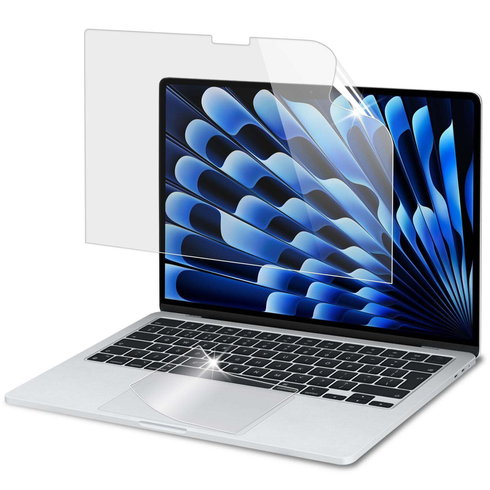 対応機種: MacBook Air M4 /M3 / M2チップ(2025/2024/2022 モデル)13.6インチ用 【2枚セット】:本製品は液晶画面保護フィルム、トラックパッドフィルムの2点セットです。