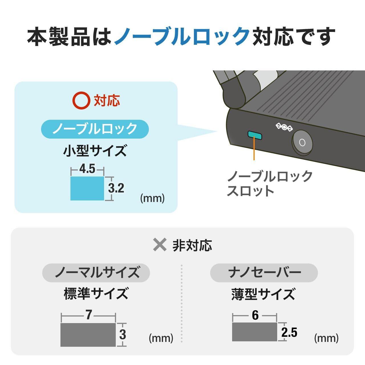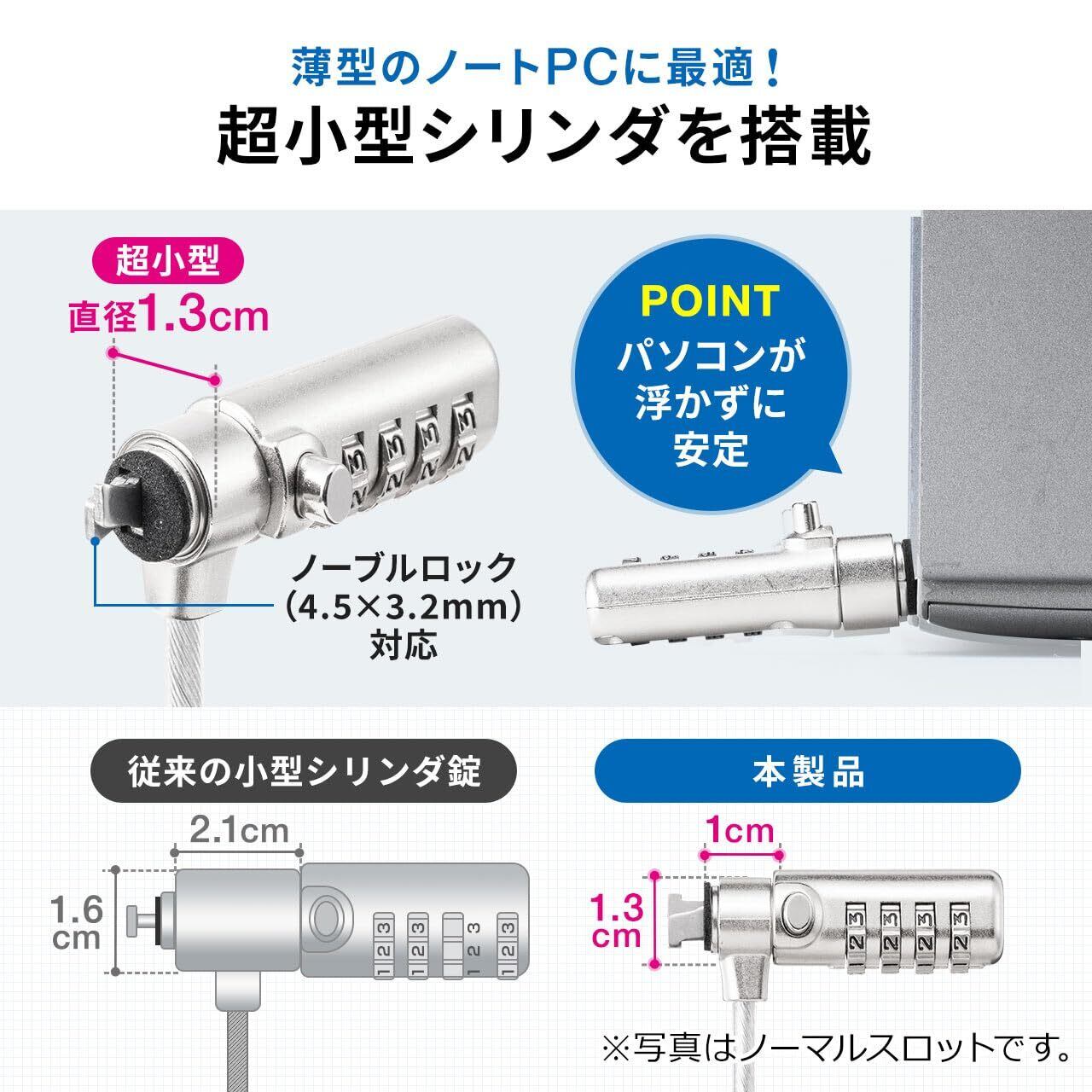 サンワダイレクト セキュリティワイヤー PC 盗難防止 ダイヤル錠 4桁 1.5m 径4mm ノーブルロック Noble Wedge 3.2×4.5mm 薄型 ロック ノート パソコン 200-SL107
