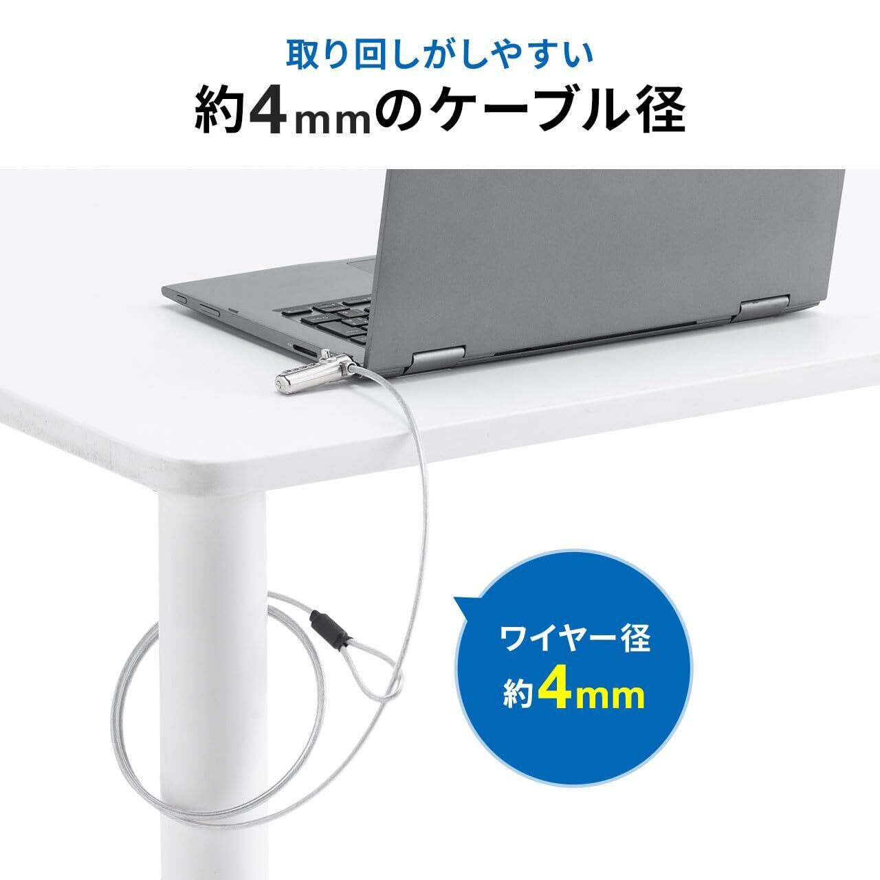 4桁 ダイヤル 錠で取り付け、取り外しができる セキュリティ ワイヤー です。