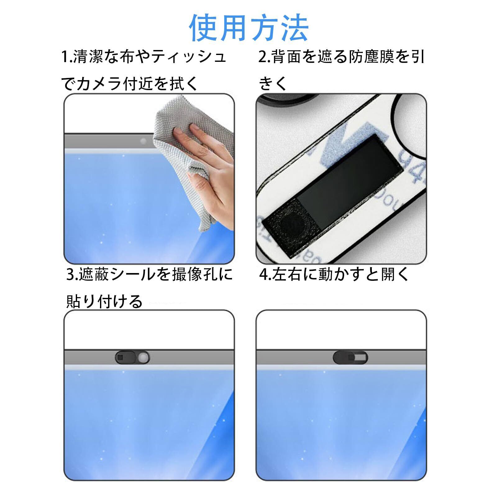 【簡単な取り付けと使用方法】Webカメラの位置に合わせて貼り付け、15秒間強く押すことで、大きな粘着力を発揮することができますスライドするだけでカメラをオン/オフできるので楽です