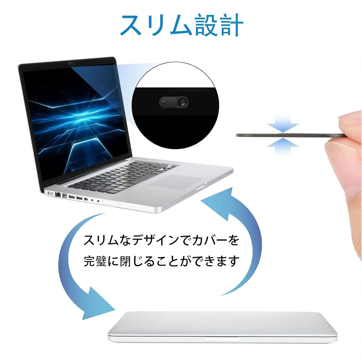 【開閉式Webカメラカバー】ノートパソコンやスマートフォンなどのWebカメラ/カメラを塞ぎ、プライバシーが漏れる心配はありません