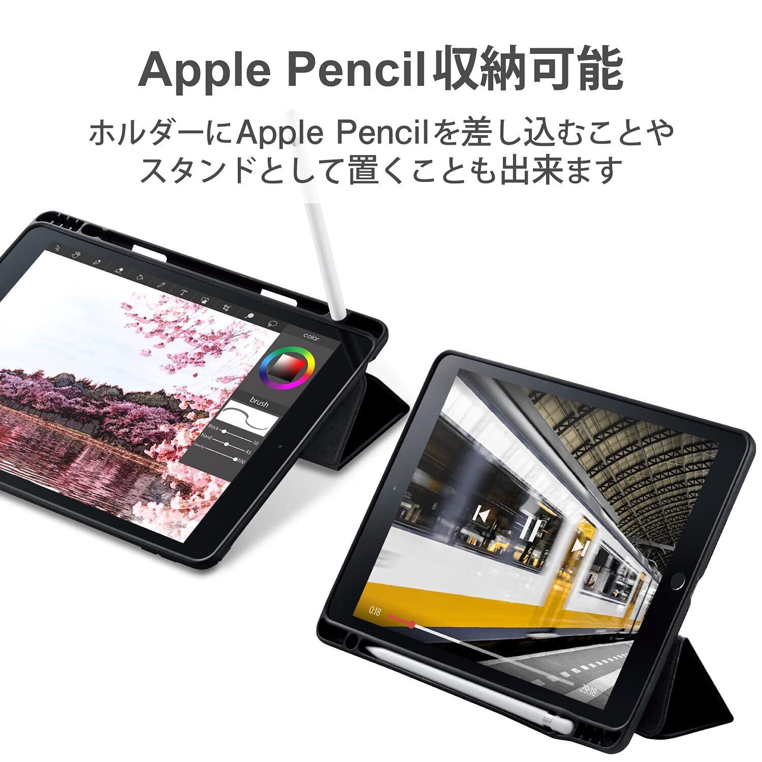 エレコム iPad 10.2 第9/8/7世代 (2021/2020/2019年) ケース オートスリープ/ウェイク対応 Apple Pencilスタンド・ホルダー付 ブラック TBWA19RWVSABK