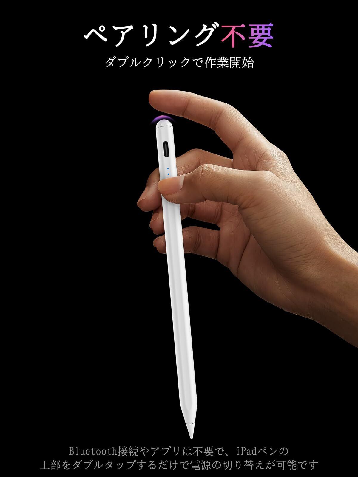 KEEPRO iPad ペンシル 2018〜2025年iPad対応 Apple Pencil代替 タッチペン スタイラスペン Type-C急速充電 超高感度 傾き感知 パームリジェクション 磁気吸着 誤作動防止 極細ペン先 替え芯3本付き【Bluetooth不要・電源オンですぐ使える!】ホワイト