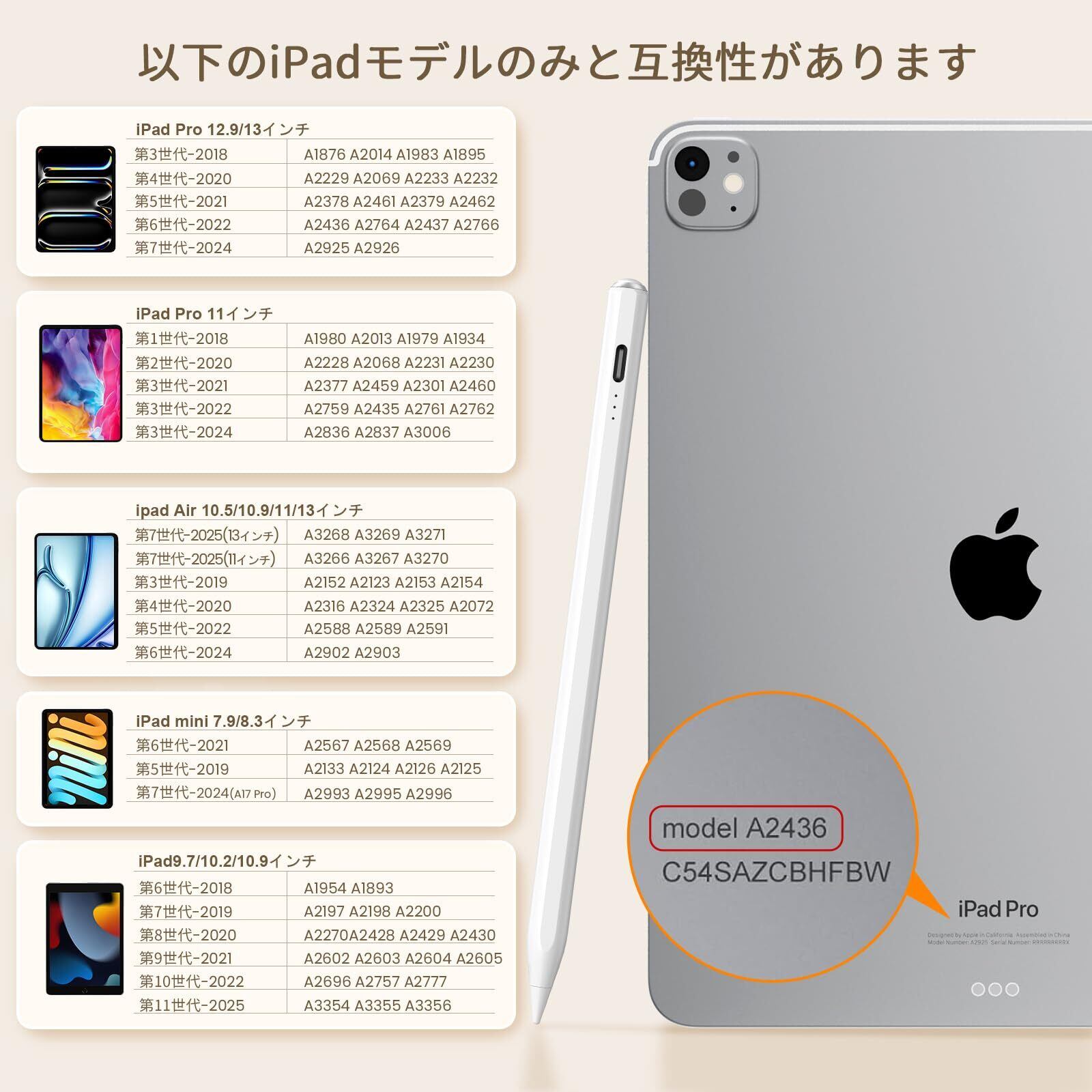 ️【互換性】iPadの鉛筆対応機種iPadシリーズ2022-2018モデルです。ipad 第11/10/9/8/7/6世代、iPad Air 第7/6/5/4/3 世代、iPad Pro 12.9 インチ第 6/5/4/3世代、iPad Pro 11インチ第5/4/3/2/1世代、iPad Mini 第7/6/5 世代。購入する前にiPadモデルを確認してください。
