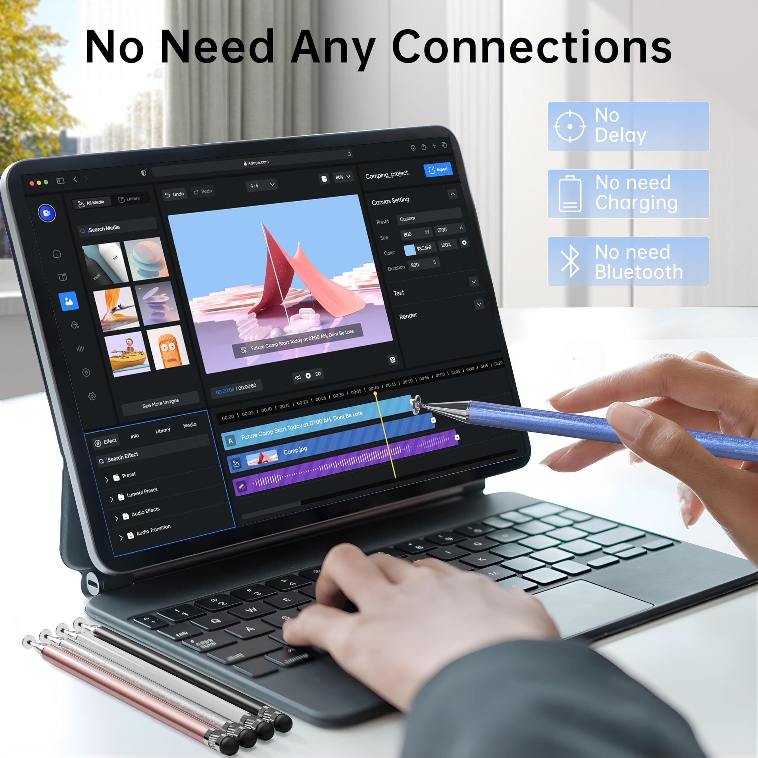 【2-in-1スタイラスペン】タブレットペン、軽量合金製、接続や充電の必要はありません、パッケージを開いて使用する準備ができて、快適な感じ、頑丈で耐久性があり、いつでもどこでもあなたのインスピレーションを簡単にキャプチャするためにそれを使用することができ、紙の上に書くようにすべてを作り、より正確な書き込み/描画/タッチ体験を与える。