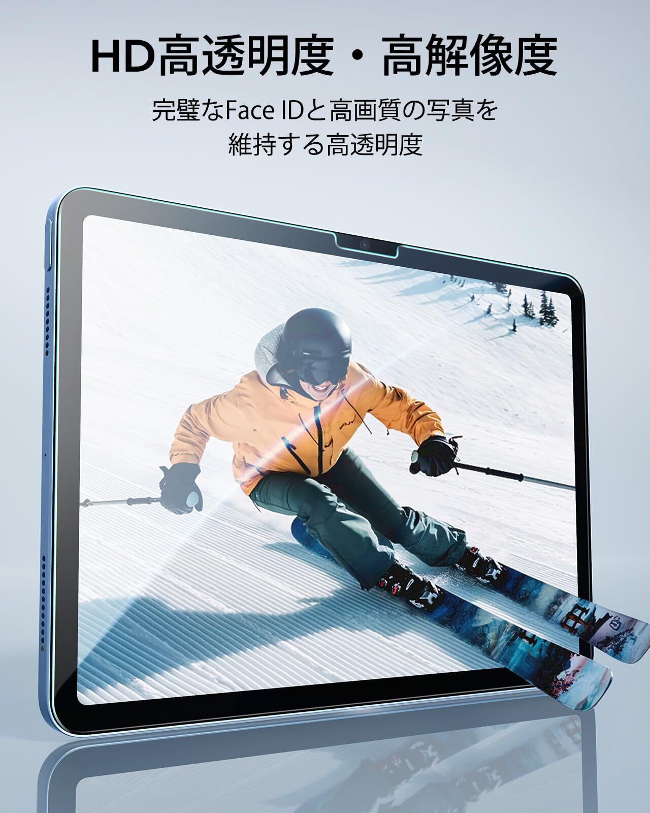 特徴 簡単貼り付け 自動除塵 気泡ゼロ 指紋防止 傷防止 HD透過度 Apple Pencil対応