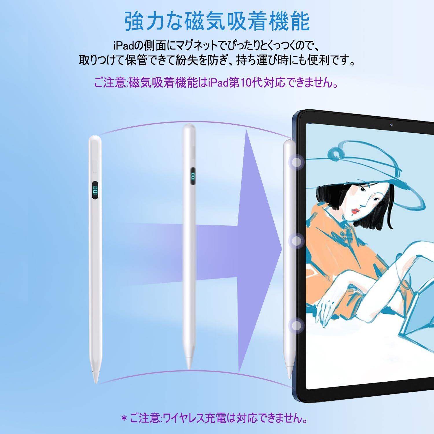 【2025増量版】iPadペンシル 磁気吸着&USB-C急速充電/バッテリー表示スタイラスペン 高精度傾き検知&誤操作防止タッチペン iPad Pro 11/12.9/M4 Air/M2/M3 iPad Mini第5-7世代 iPad第6-11世代対応【ホワイト】
